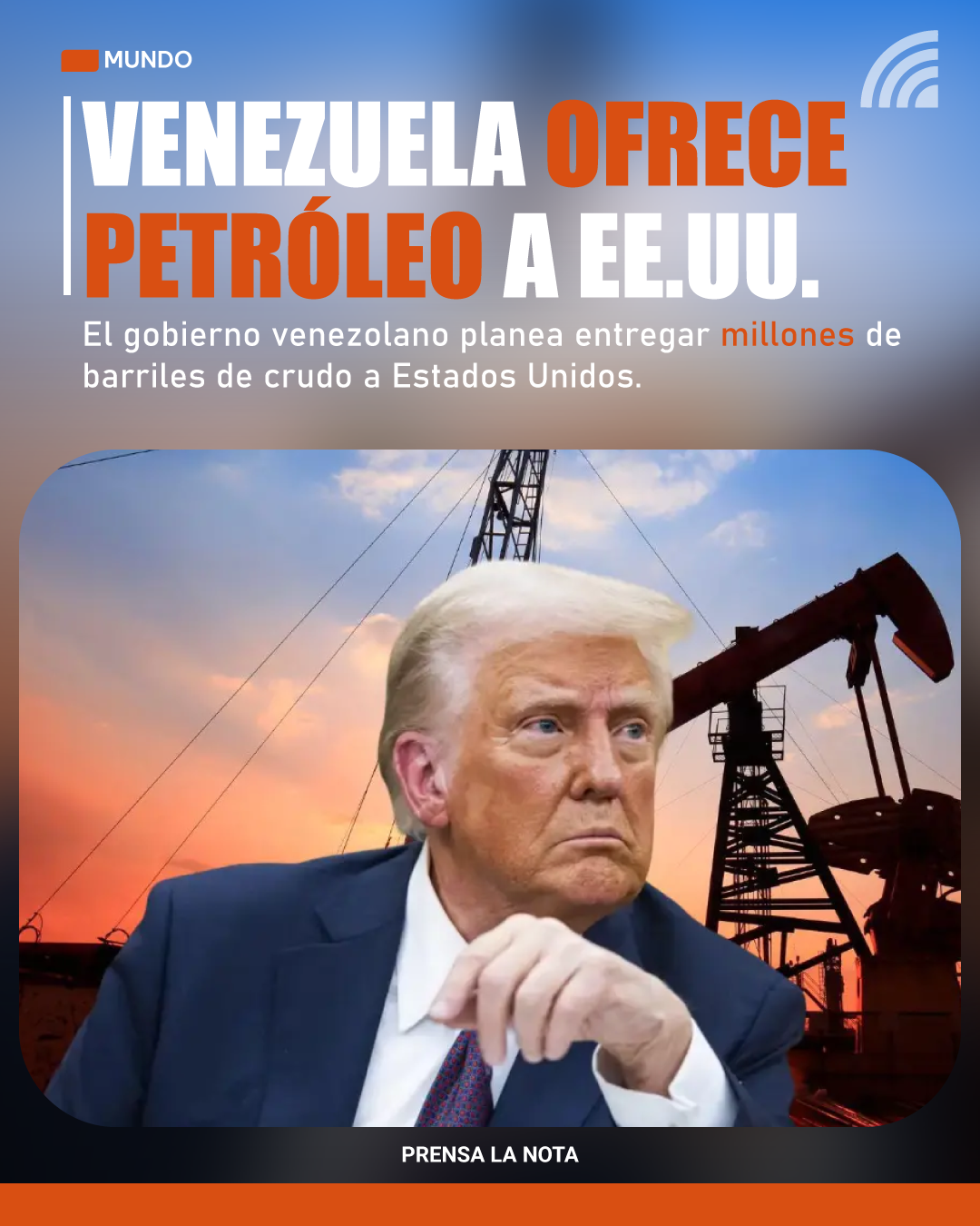 El Presidente Donald Trump anunció que las autoridades provisionales de Venezuela entregarán entre 30 y 50 millones de barriles de petróleo.
