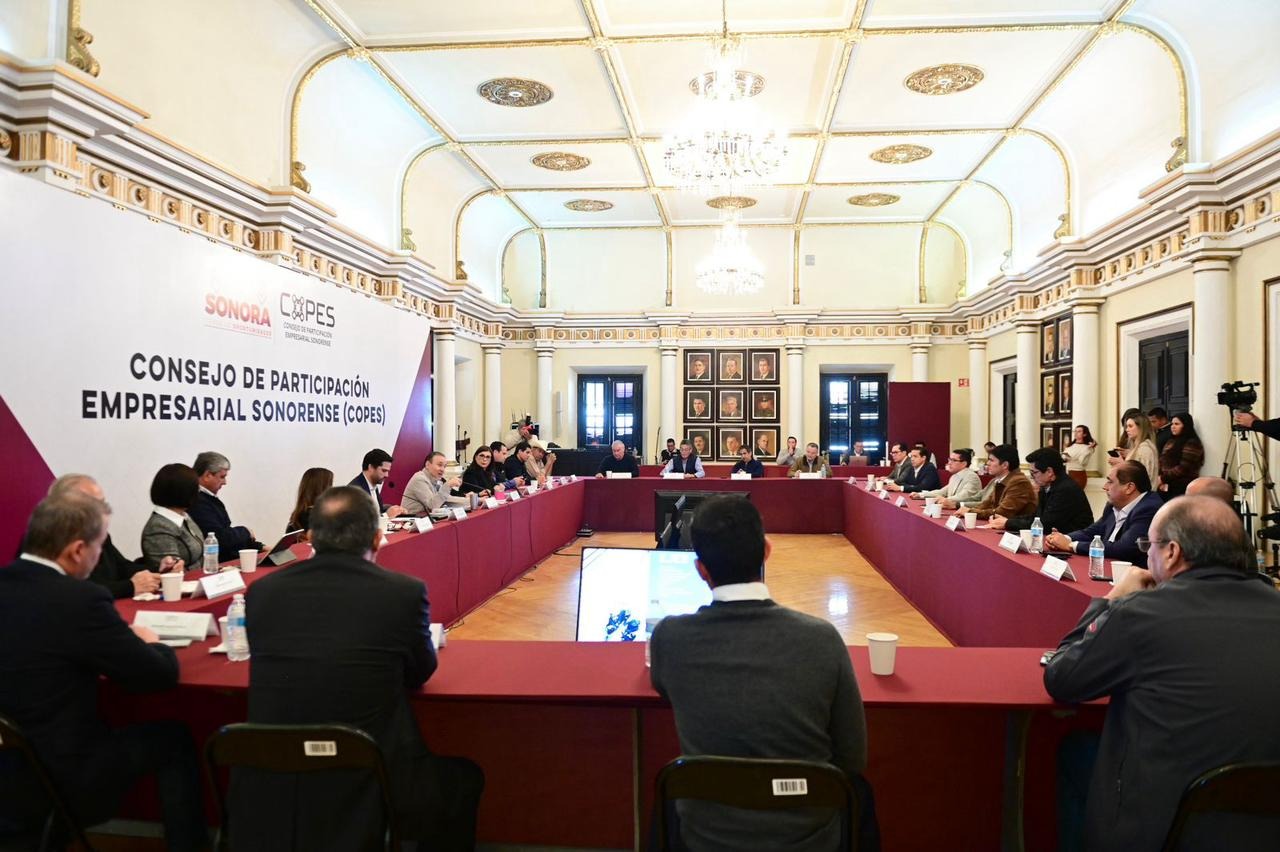 Hermosillo, Sonora; 11 de enero de 2024.- A fin de consolidar estrategias que fortalezcan el crecimiento económico del estado y fomenten la atracción de nuevas inversiones de industrias de todos los sectores que beneficien el desarrollo y la economía de las familias sonorenses, el gobernador Alfonso Durazo Montaño presidió la primera sesión del Consejo de Participación Empresarial Sonorense (Copes).