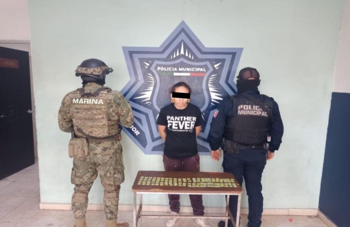 El día de ayer en la colonia Libertad elementos de la Secretaría de Seguridad Pública Municipal y Marina aseguraron 94 envoltorios de cristal al capturar a una persona de sexo femenino la cual fue vinculada a la presunta comisión del delito contra la salud.