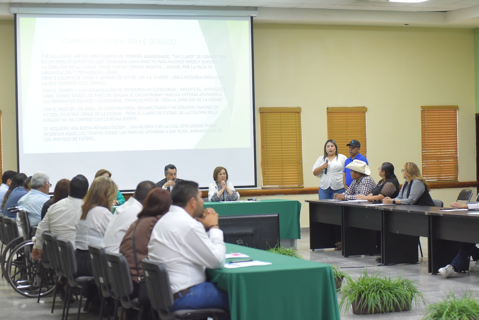 En Sesión Abierta y Pública de Cabildo, el Presidente Municipal, Javier Lamarque Cano, las y los integrantes del Cabildo, se reunieron para escuchar y atender a vecinos de la Colonia Valle Dorado quienes presentaron un proyecto para la rehabilitación y mantenimiento del campo de fútbol de dicha colonia.