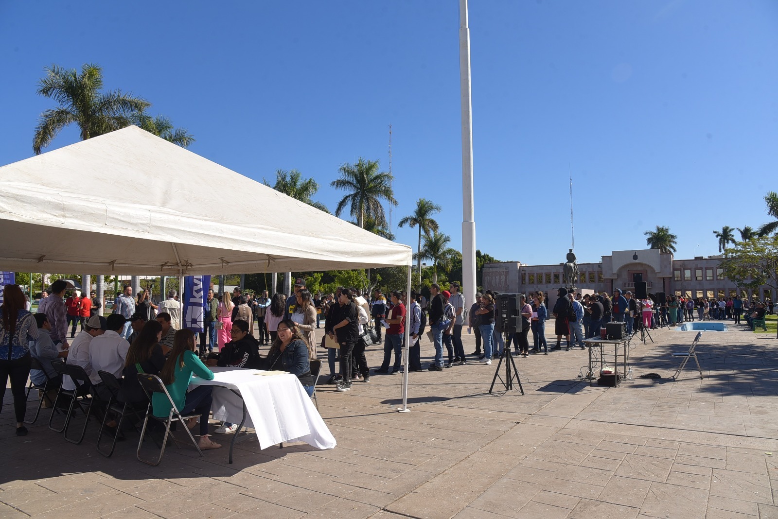 El Secretario de Desarrollo Económico, Fernando Durazo Picos reconoció la gran convocatoria que se observó tanto en el área frente a palacio municipal, como en los estands que, para el mismo fin, se instalaron las calles Ejército Nacional y Norman E. Borlaug, de la colonia Primavera, donde acudieron cientos de personas en busca de ocupar alguna de las vacantes que se expusieron durante este evento.
