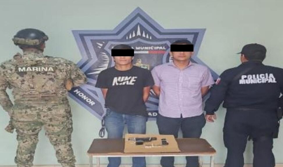 Al representar un riesgo de accidente, les efectuaron el alto, deteniendo su marcha la unidad ligera, de la cual descendieron los dos presuntos de inmediato arrojando uno de ellos al suelo una pistola corta e intentando huir, sin embargo, fueron aprehendidos rápidamente.