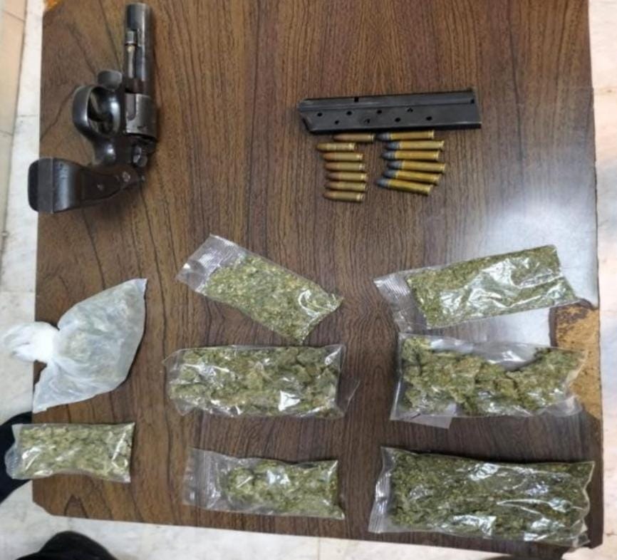 +Hay dos personas detenidas, armas de fuego cortas, envoltorios de droga y cartuchos útiles