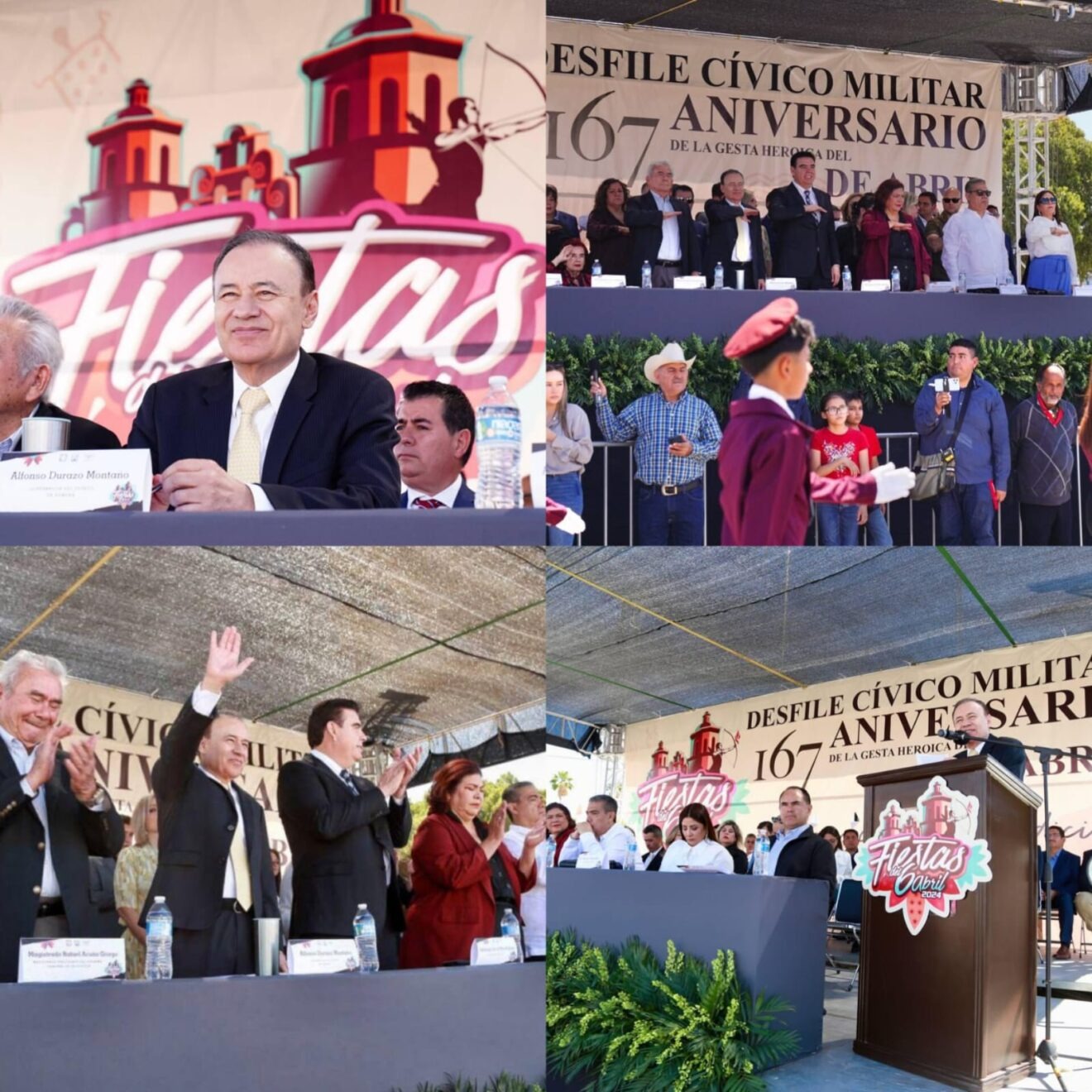 CABORCA, SONORA. 12 DE ABRIL DE 2024.- Como parte de las actividades conmemorativas del 167 aniversario de la gesta heroica de Caborca, el gobernador Alfonso Durazo Montaño atestiguó el desfile cívico militar donde se congregó la ciudadanía para recordar esta fecha.