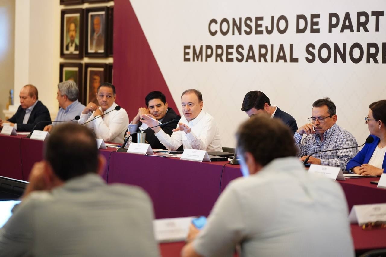 Ante empresarios de diferentes sectores se informó sobre los avances de temas prioritarios para las y los sonorenses, como es el caso del Fortalecimiento de la infraestructura hídrica; la reubicación vías del tren en Nogales; el Fondo de Seguridad Pública y Justicia.