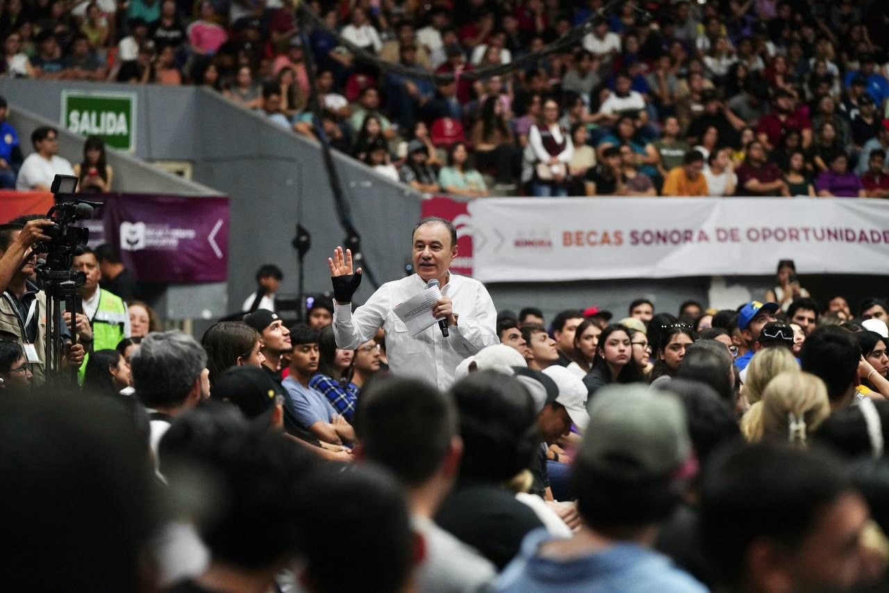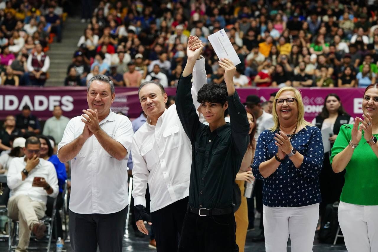 Ante miles de jóvenes, el mandatario estatal destacó que, el programa de becas para los estudiantes sonorenses, representa uno de los compromisos más importantes de su administración estatal para que los jóvenes cuenten con facilidades que les permitan concluir sus estudios y erradicar la deserción escolar.