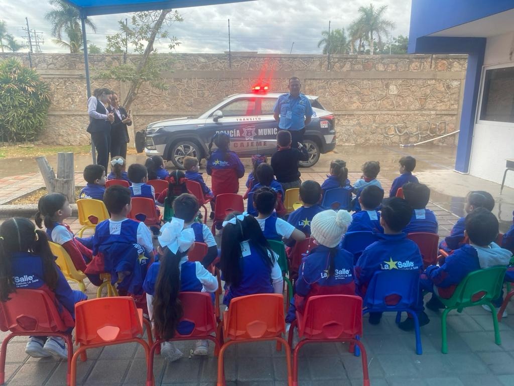 El Comandante de Tránsito Municipal, dio a conocer que los agentes Emmanuel Carrillo y Francisco Jaime Palomares, comisionados al área de Cultura Vial de la corporación policial, estuvieron presentes en el Instituto La Salle preescolar.