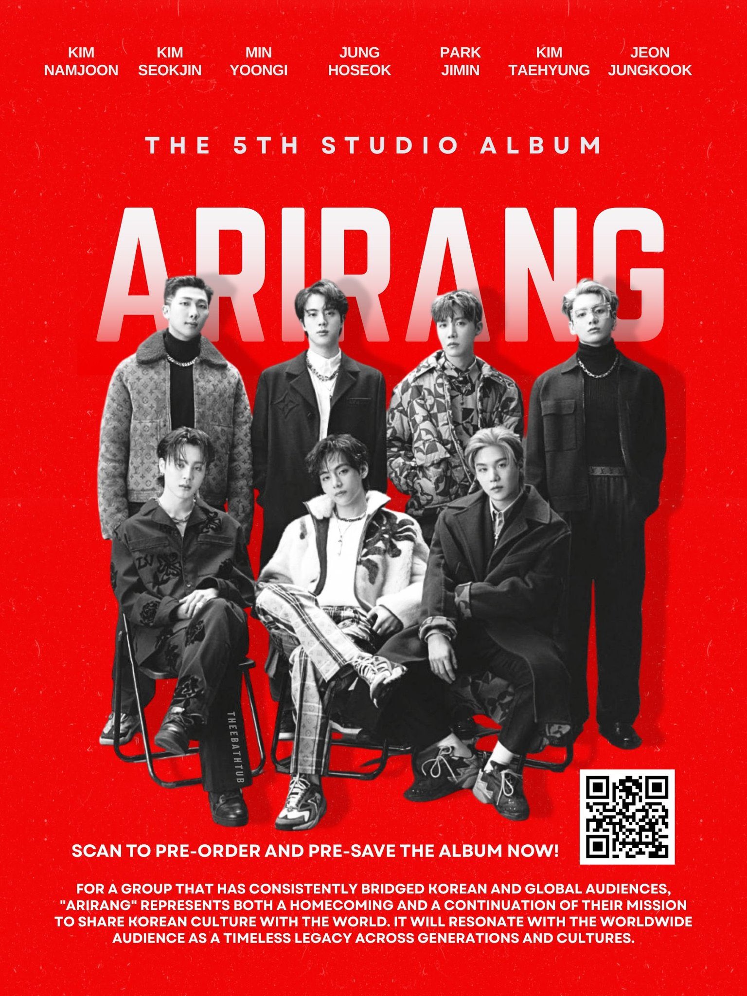 El concierto en vivo, titulado BTS The Comeback Live | Arirang, se transmitirá desde la emblemática plaza Gwanghwamun, en Seúl, con el palacio Gyeongbokgung como telón de fondo.