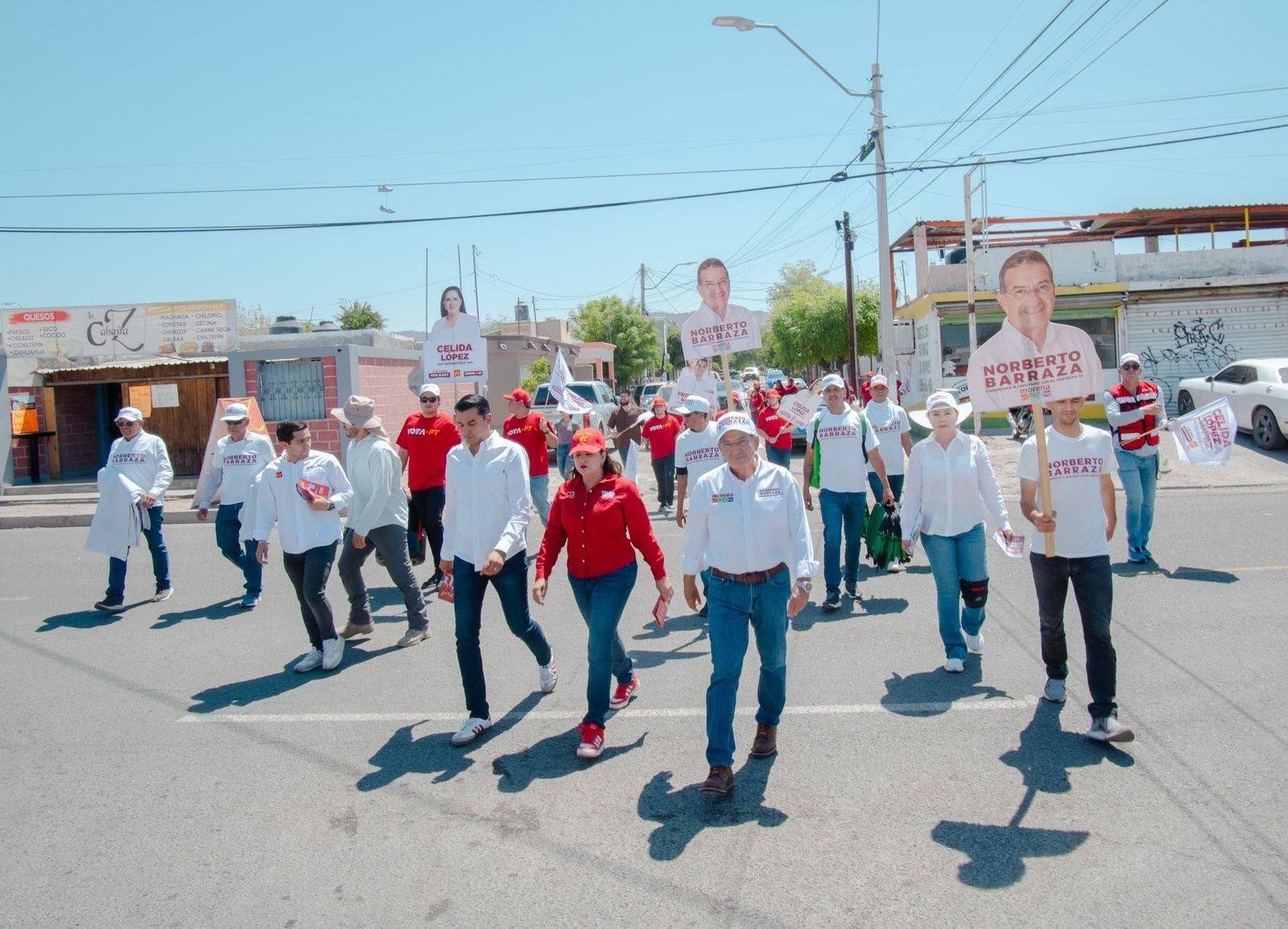 15 de mayo, Hermosillo, Son.- Celida López y Frolyán Gámez, candidatos al Senado por el Partido del Trabajo, tuvieron un recorrido doble en el parque la Antena, en Palo Verde, y por las calles de la colonia Ley 57, con el fin de seguir sumando apoyos para lograr el Plan C.