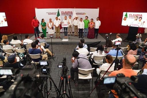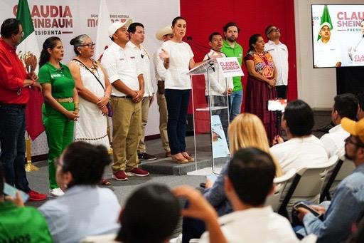 En la conferencia de prensa acompañaron a la candidata presidencial, Mario Delgado Carrillo, presidente nacional de Morena; las y los candidatos al Senado, Antonino Morales Toledo, Luisa Cortes García, Laura Estrada Mauro, Benjamín Robles Montoya; así como las y los candidatos a diputados federales Damaris Domínguez, Carol Antonio Altamirano y Gloria Sánchez López, Carmelo Cruz Mendoza.