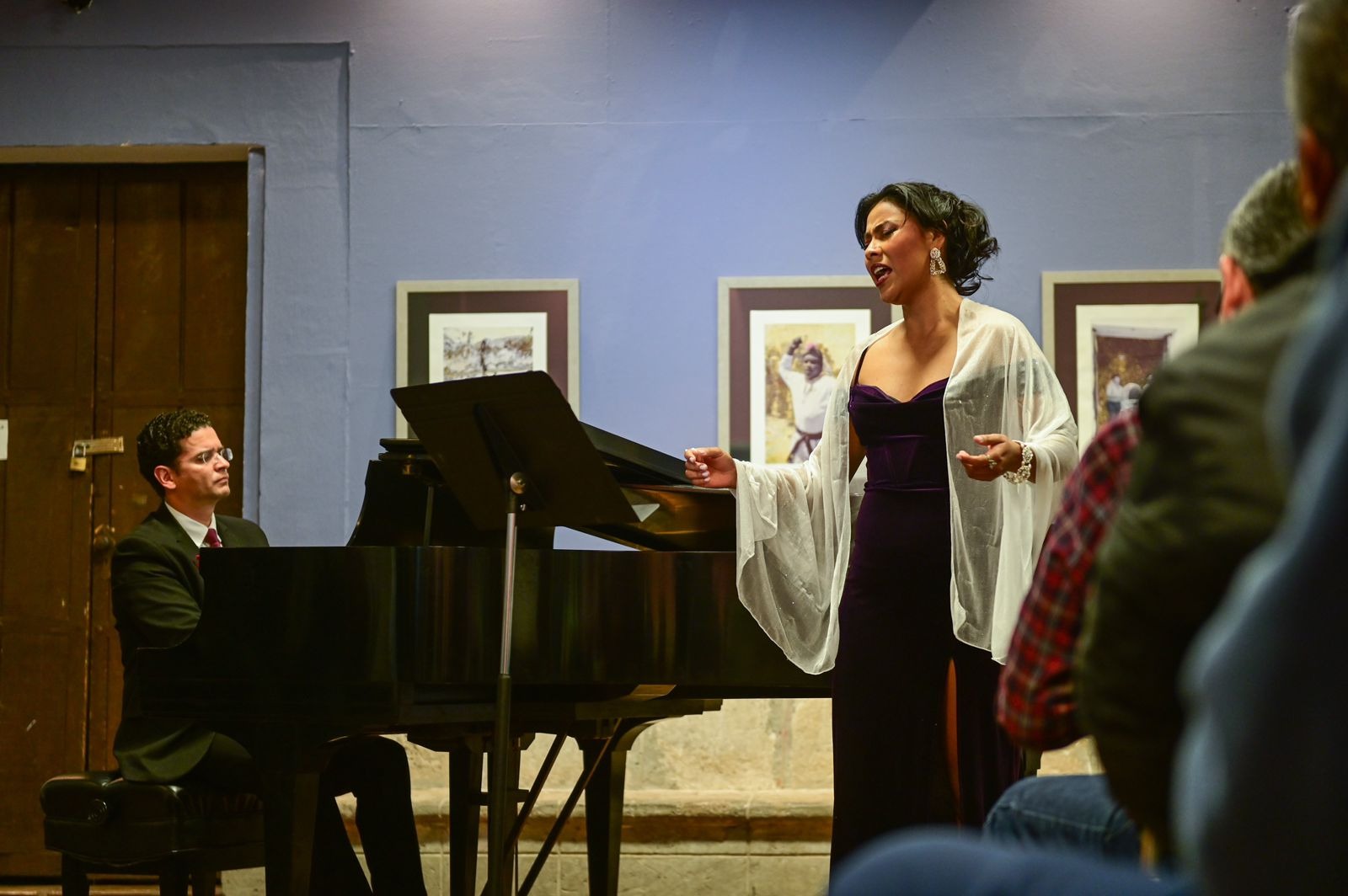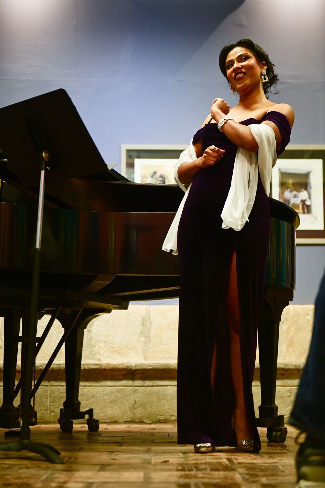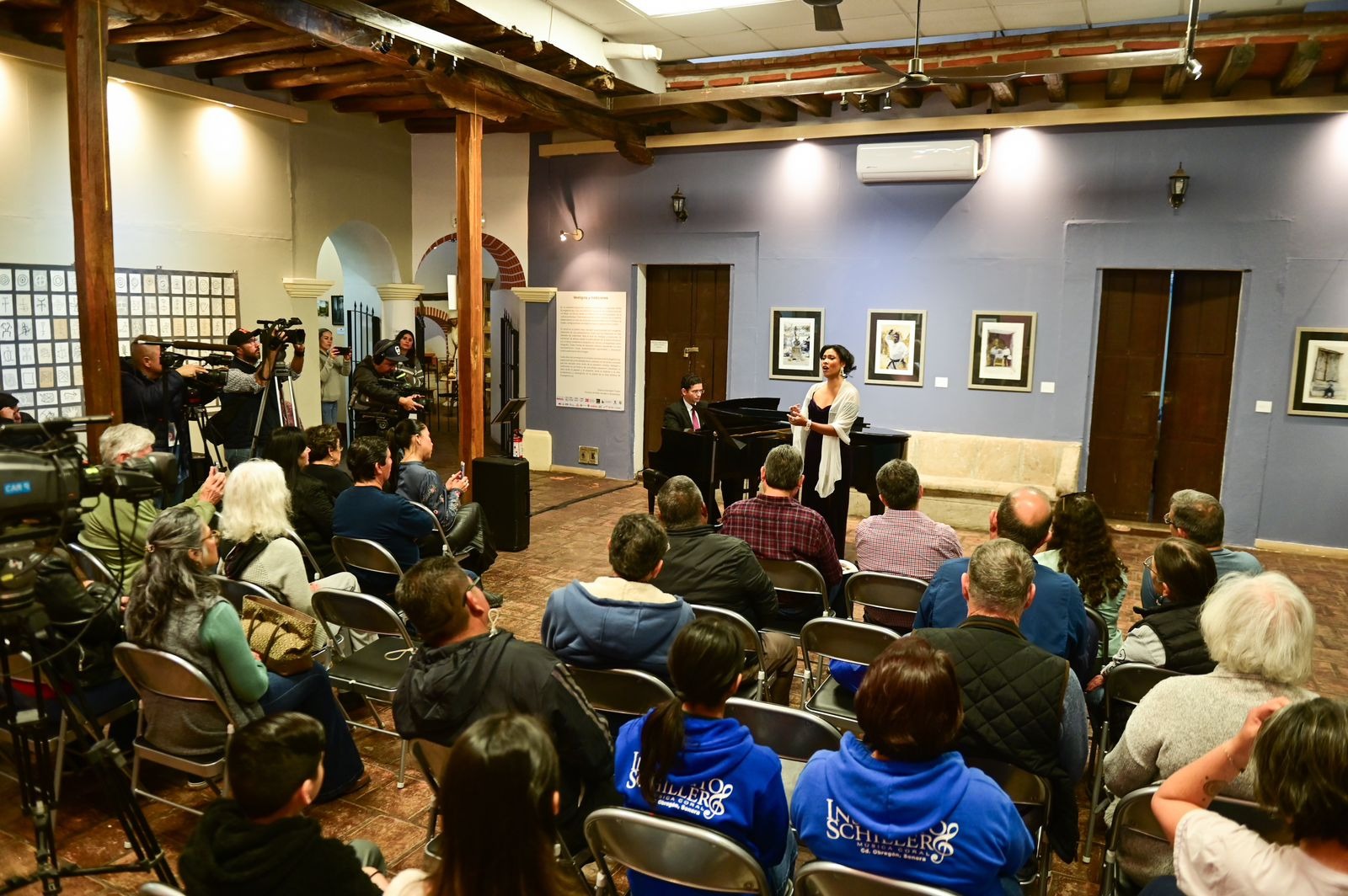 Álamos, Sonora; 22 de enero de 2024.- La relación cultural que inició en la 51 edición del Festival Cervantino entre Guanajuato y Sonora sigue su cause, ahora con la presentación de la soprano Sindy Gutiérrez quien se presentó acompañada del pianista Jonathan Josafat González, teniendo como escenario el Museo Costumbrista de Sonora.