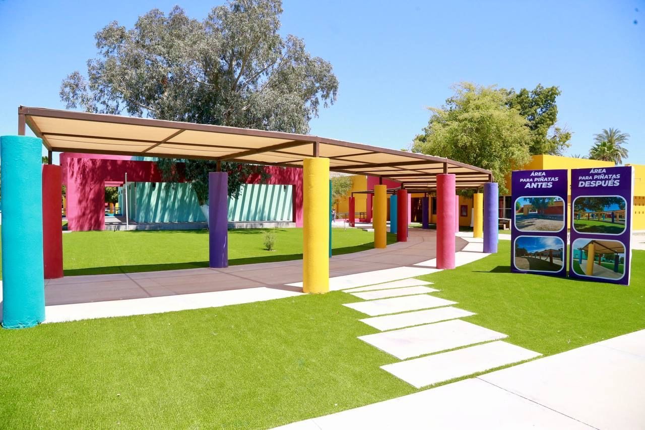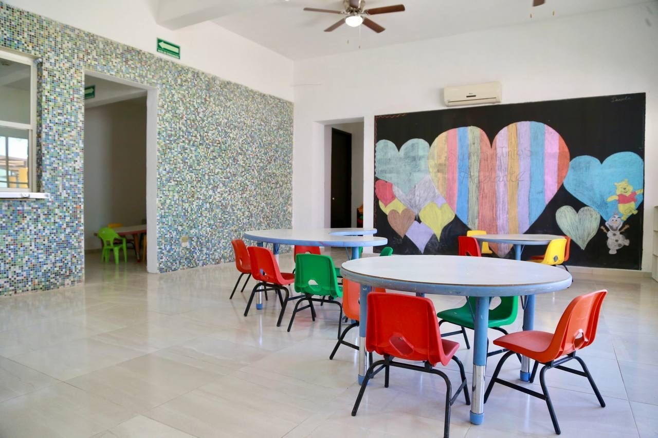 Esta remodelación busca contar con mejores condiciones para la atención de niñas, niños y adolescentes, para que no vivan en un entorno de violencia, por lo que desde octubre de 2023 se comenzó con la construcción de un área de lockers en la zona exterior del edificio de visitas, así como la edificación de una barda, domo a base de estructura metálica y cubierta de lámina, colocación de pasto sintético, construcción de firme de concreto estampado y pintura de barda perimetral.