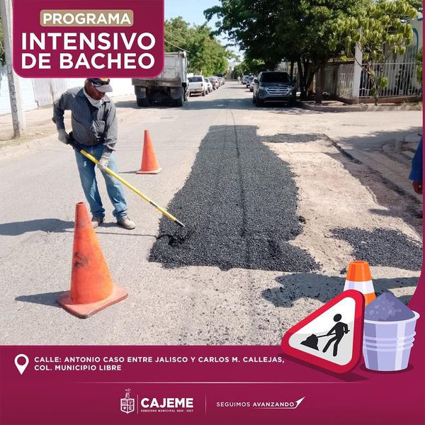 Continúan los trabajos de bacheo en diferentes sectores de la ciudad. Por el bienestar de #Cajeme #SeguimosAvanzando