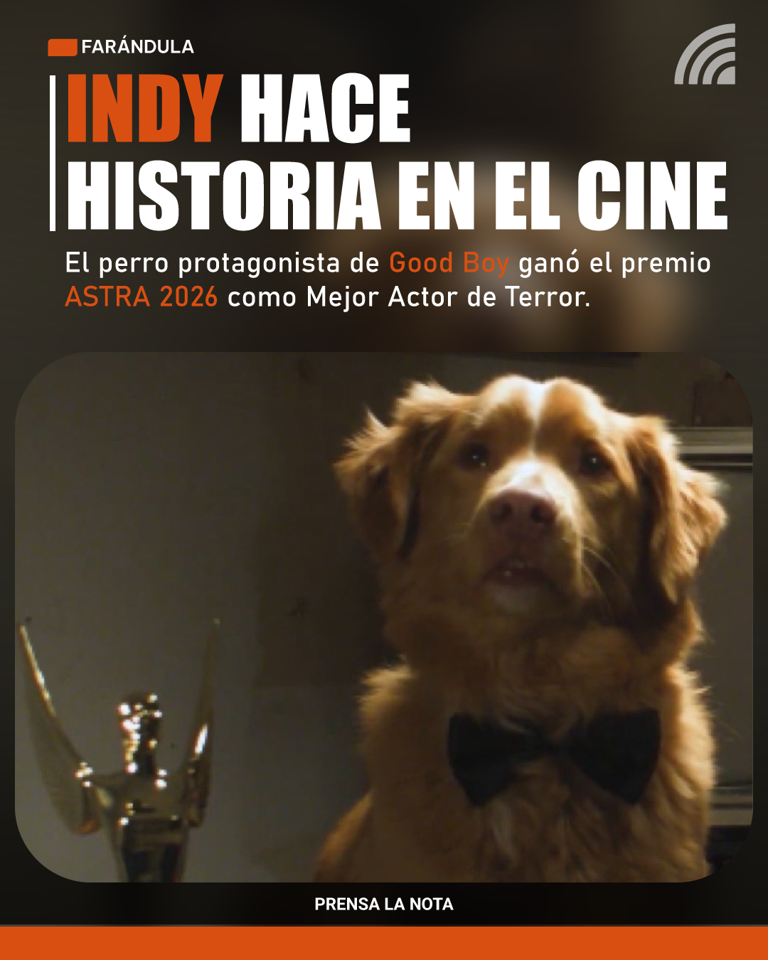 En un hecho inédito dentro de la industria cinematográfica, el perro actor Indy fue reconocido como Mejor Actor en una película de terror o suspenso durante los Premios ASTRA 2026, gracias a su papel protagónico en la cinta Good Boy, dirigida por Ben Leonberg.