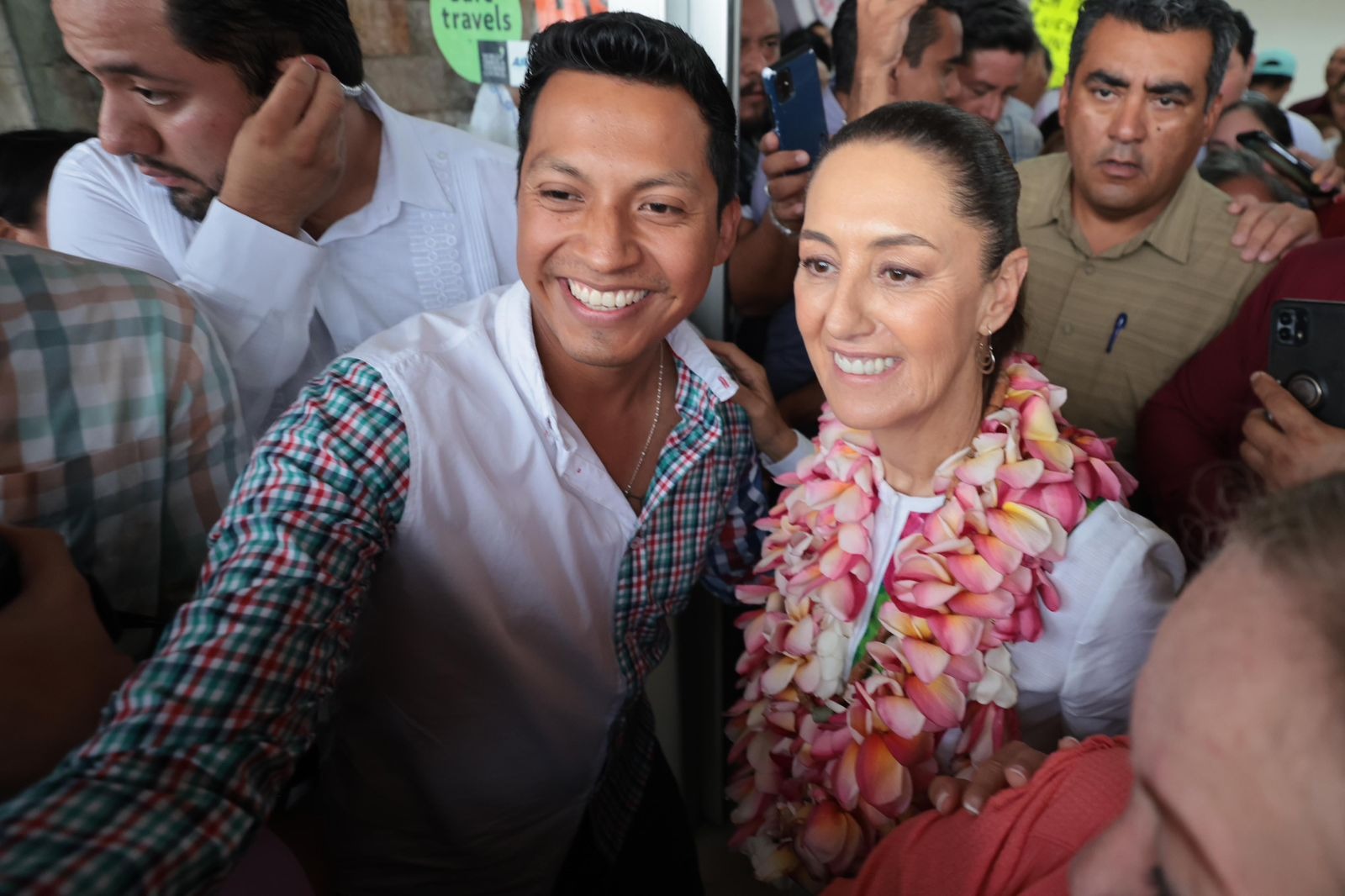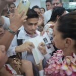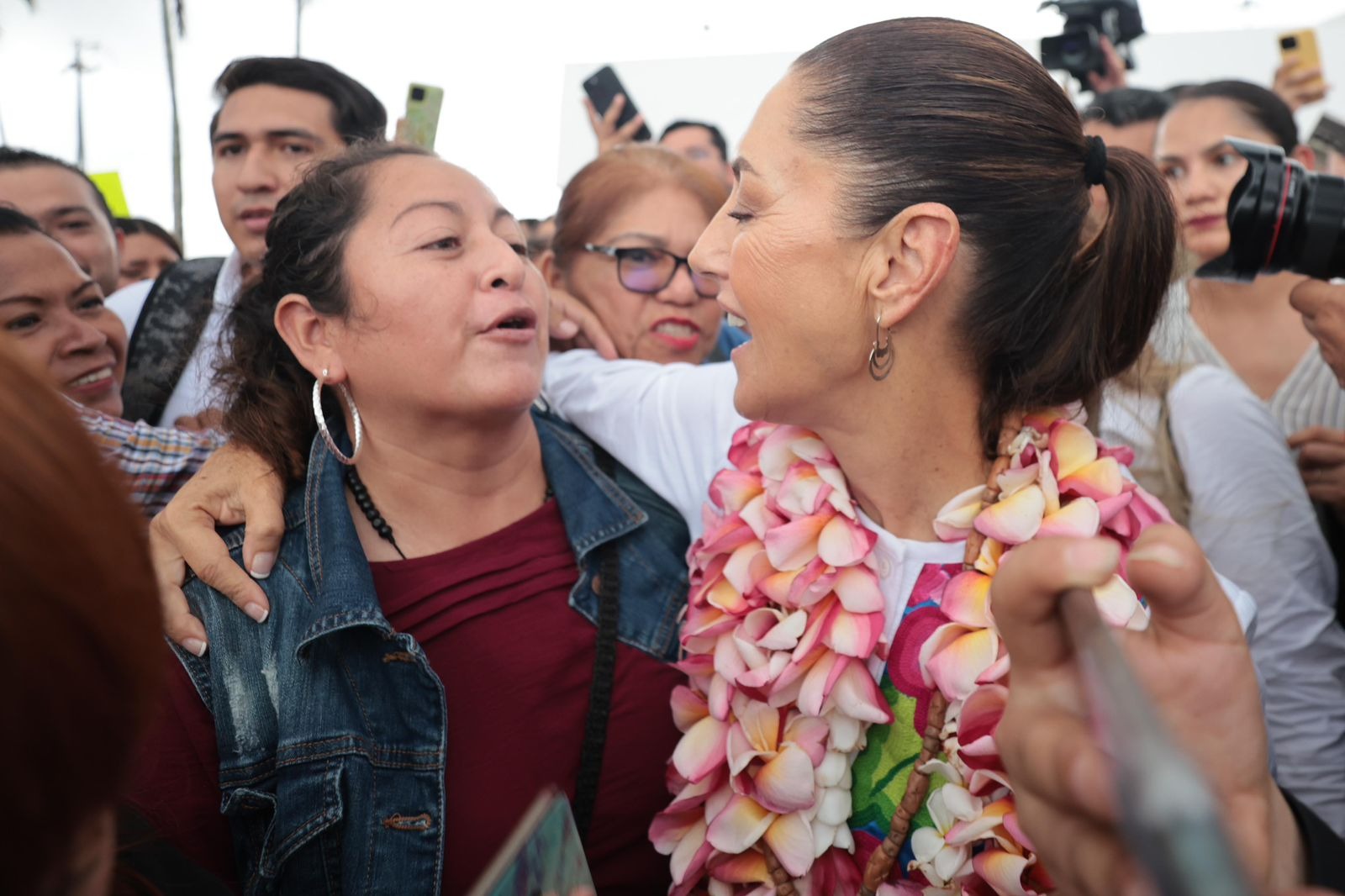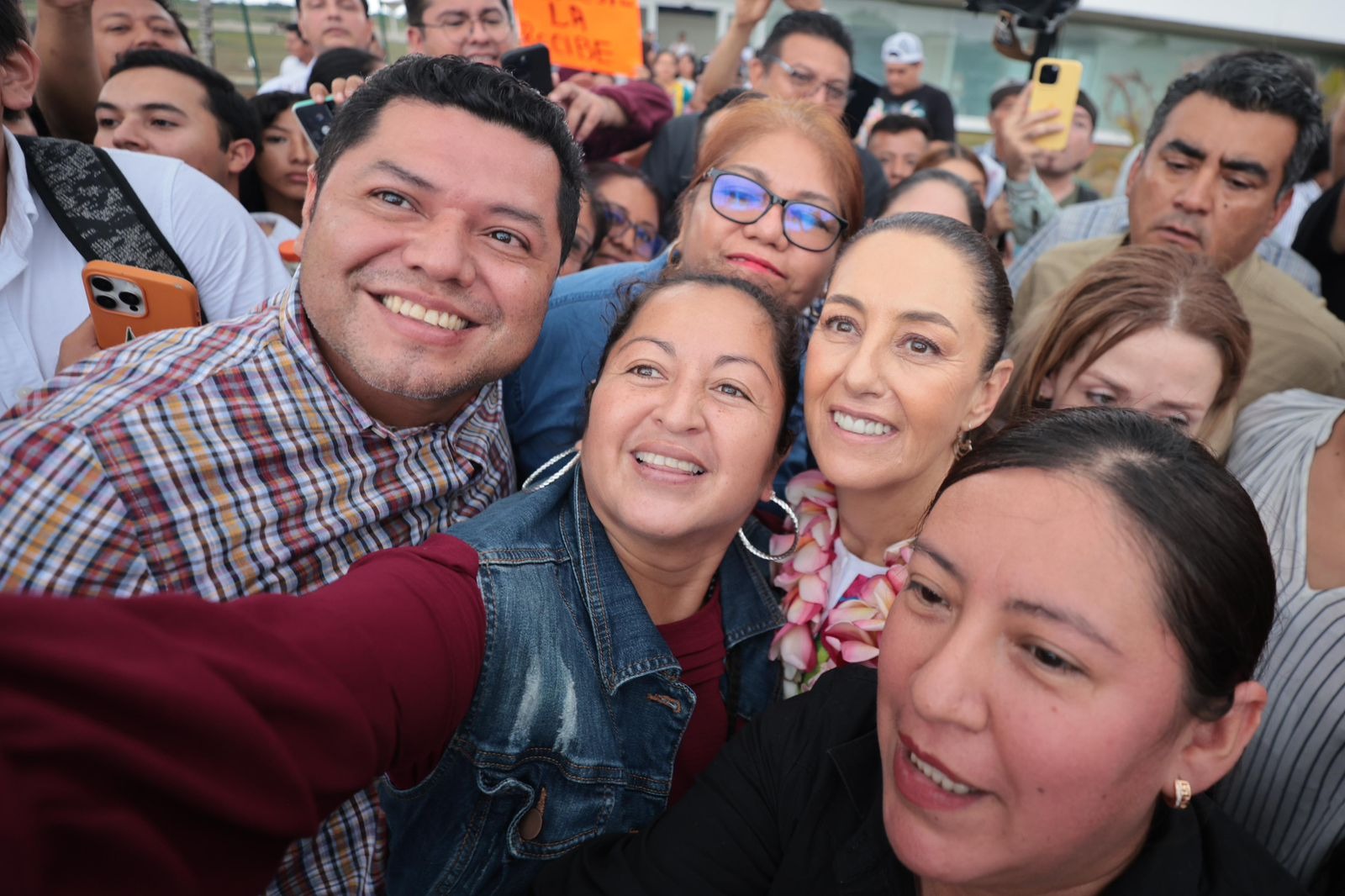 Quienes se dieron cita en el Aeropuerto de Minatitlán, mostraron el cariño del pueblo hacia Claudia Sheinbaum con abrazos, sonrisas y carteles en los que se leían mensajes como “el sureste la recibe, lo que fue musicalizado por canciones como “La Bamba”.