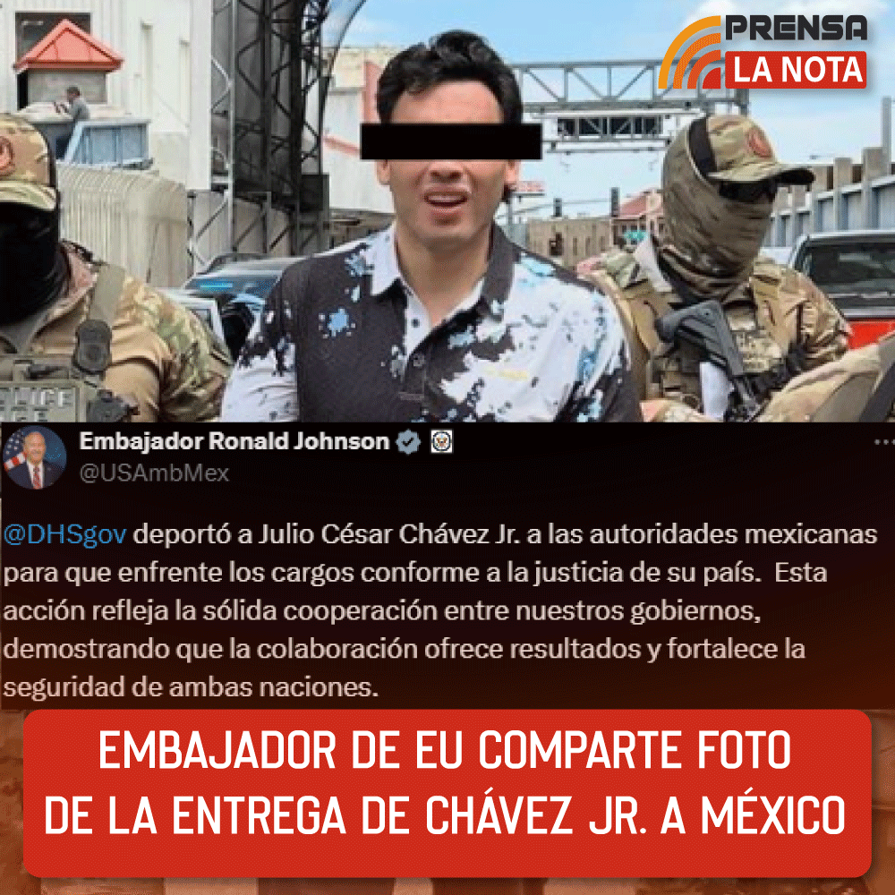 El embajador de Estados Unidos en México, Ronald Johnson, difundió una foto de la entrega, donde se ve al pugilista con los ojos blurreados, escoltado por dos agentes del Servicio de Inmigración y Agencias (ICE).