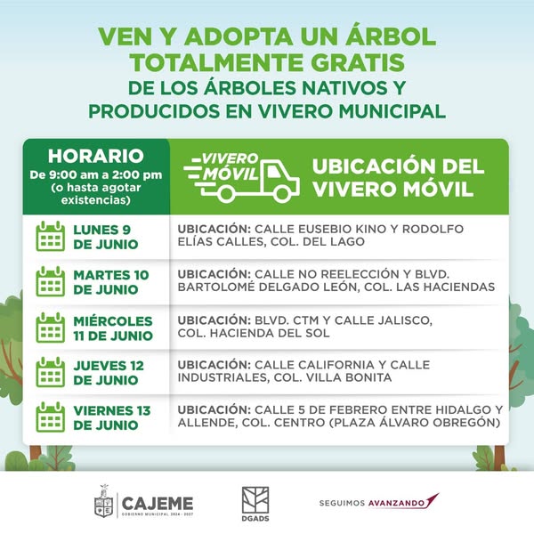 ENTREGAN ÁRBOLES GRATUITOS EN CAJEME