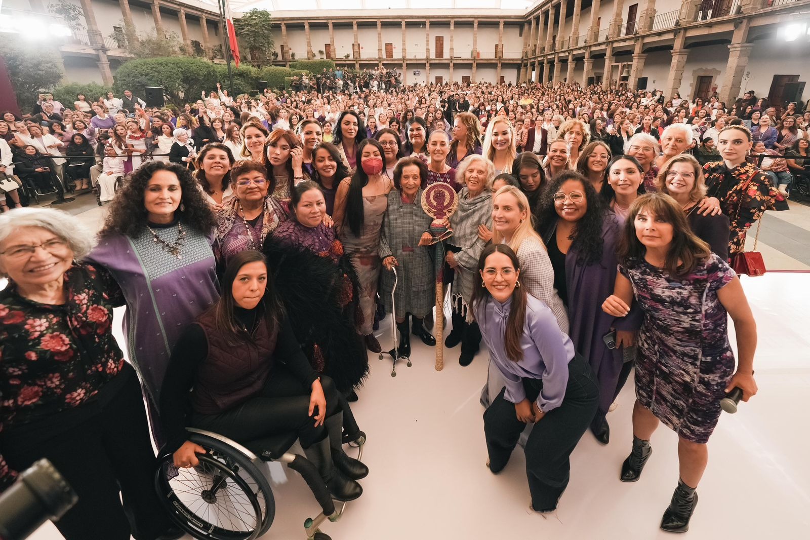 En el encuentro con más de mil 200 mujeres de todo el país, quienes entre gritos de “¡Es un honor estar con Claudia hoy!” y “¡Presidenta!”, ratificaron el liderazgo de Claudia Sheinbaum como la primera mujer en gobernar al país, lo cual fue simbolizado con la entrega de un “Bastón de Mando de las Mujeres”, que recibió de manos de la diputada electa y activista por los derechos de las mujeres, Olga Sánchez Cordero.