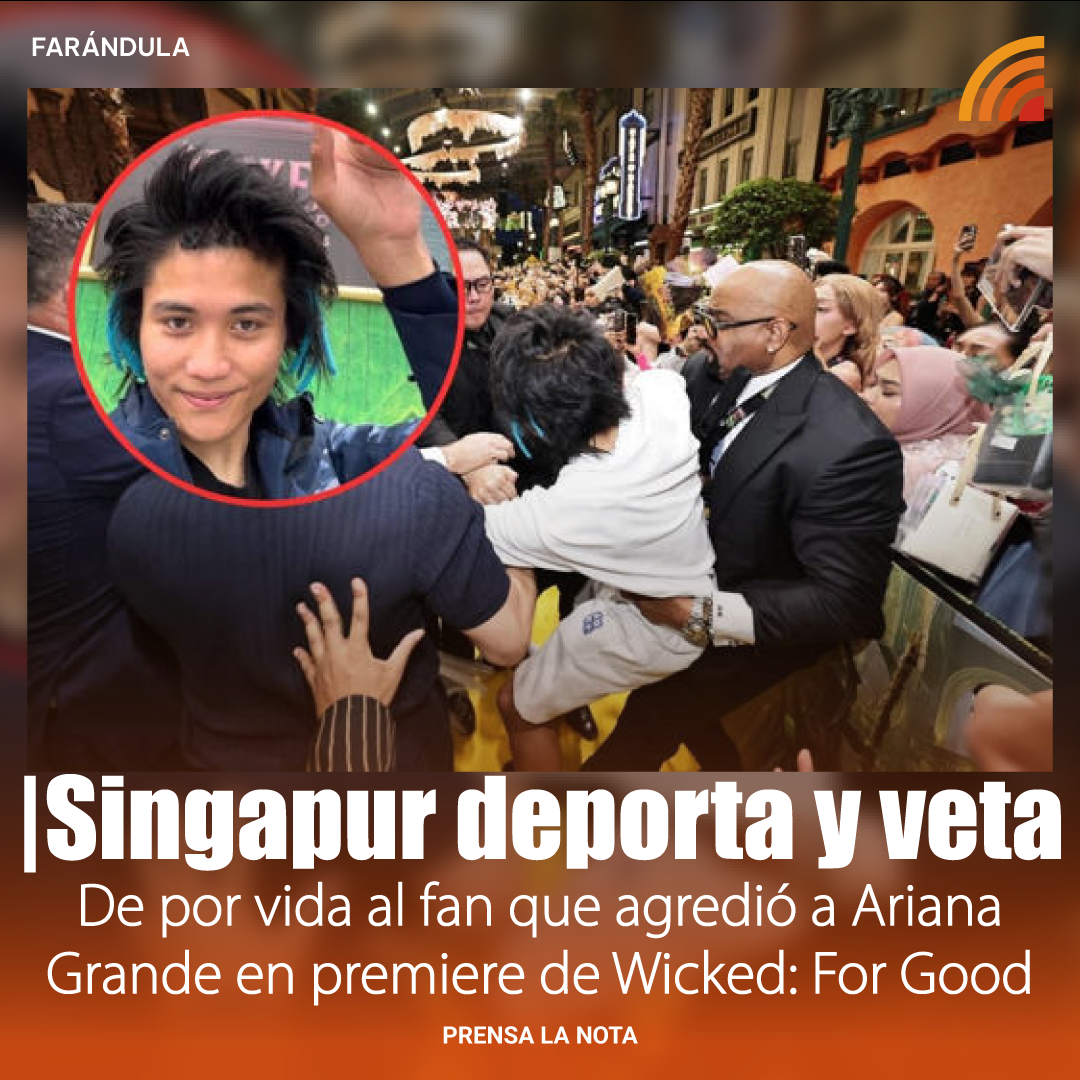FarándulaDeportan y vetan de Singapur al fan que agredió a Ariana Grande durante una premiere de Wicked: For Good