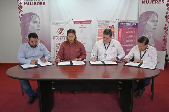 “Recibo con gusto al Director de OOMAPAS, Luis Alberto Ruiz y a sus compañeros directores quienes hacen posible seguir avanzando en el bienestar de las mujeres de Cajeme”, expresó la Secretaria, Marina Herrera, tras la firma del documento.