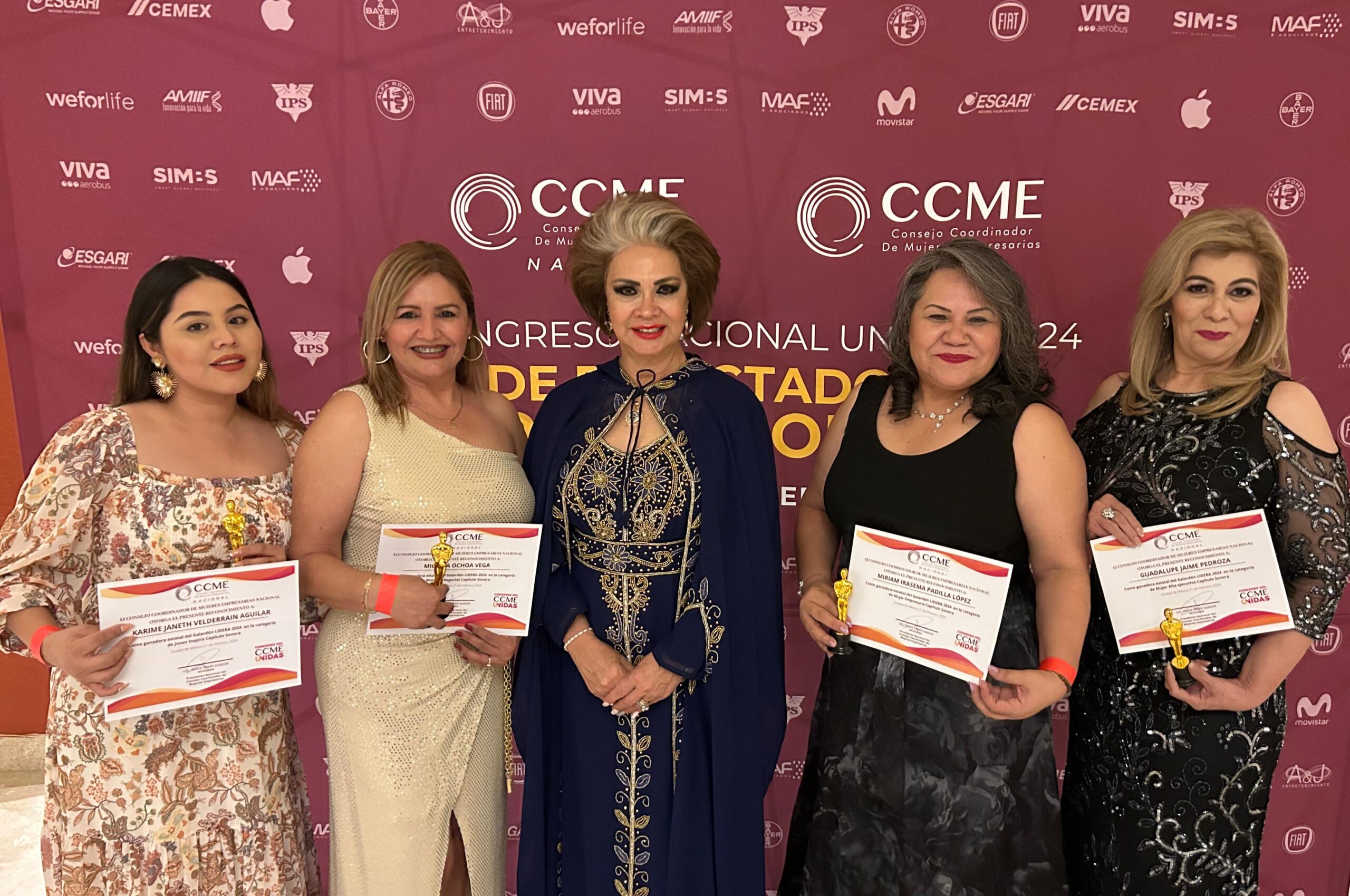 La Secretaria estatal del CCME Miriam Padilla López fue la ganadora de la comunidad Empresaria de Sonora. Mientras que Mickaela Ochoa Vega ovtuvo el Galardón Lidera estatal en la categoría Mujer de Negocios y de la comunidad Joven Inspira Karime Janéth Velderrain Aguilar.