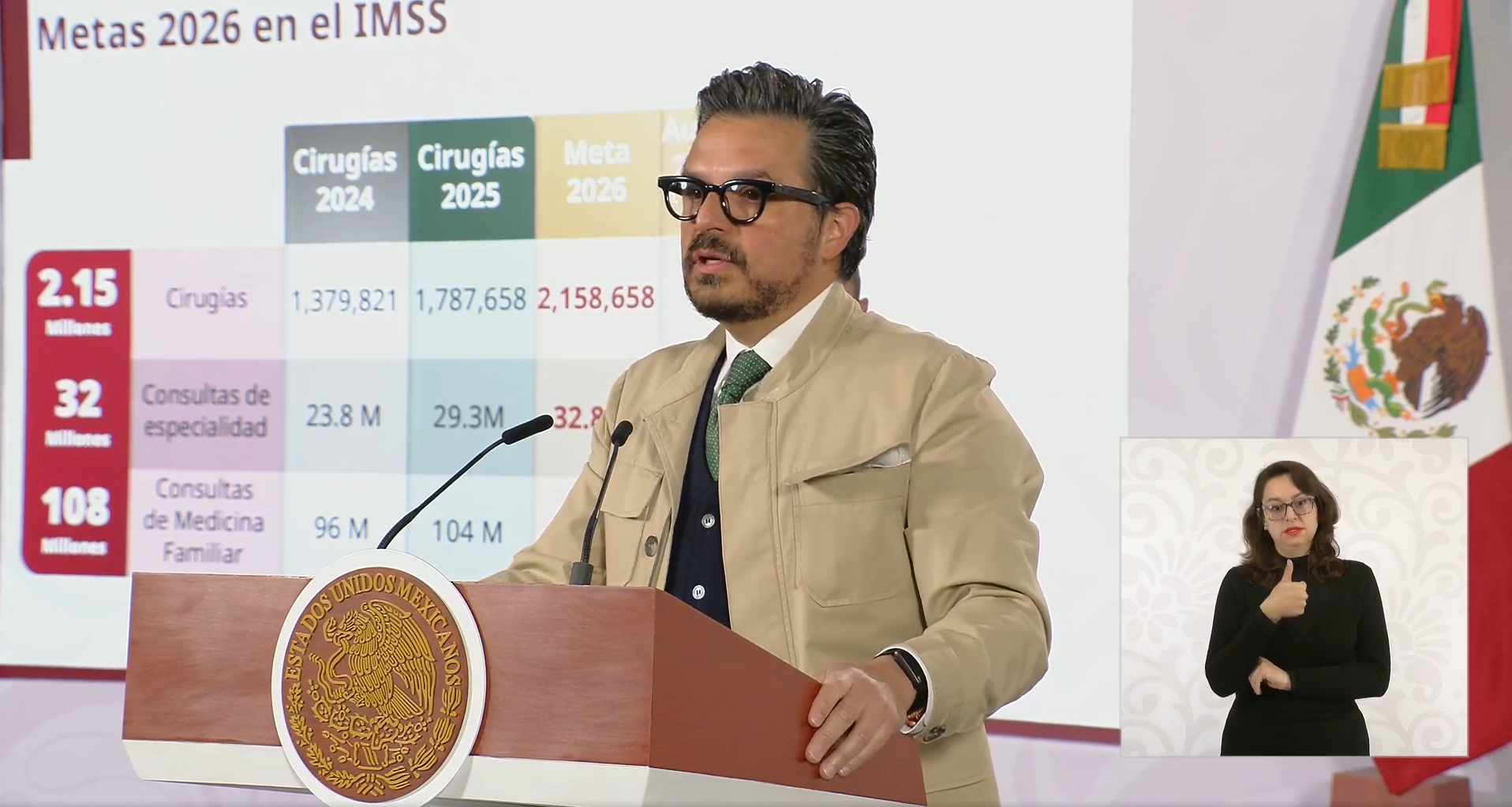Con estos resultados, Zoé Robledo anunció que 2026 será aún más exigente: el IMSS se propone llegar a 2.15 millones de cirugías, 32 millones de consultas de especialidad y 108 millones de consultas de medicina familiar, consolidando un sistema público de salud con mayor capacidad, menor rezago y atención más oportuna.