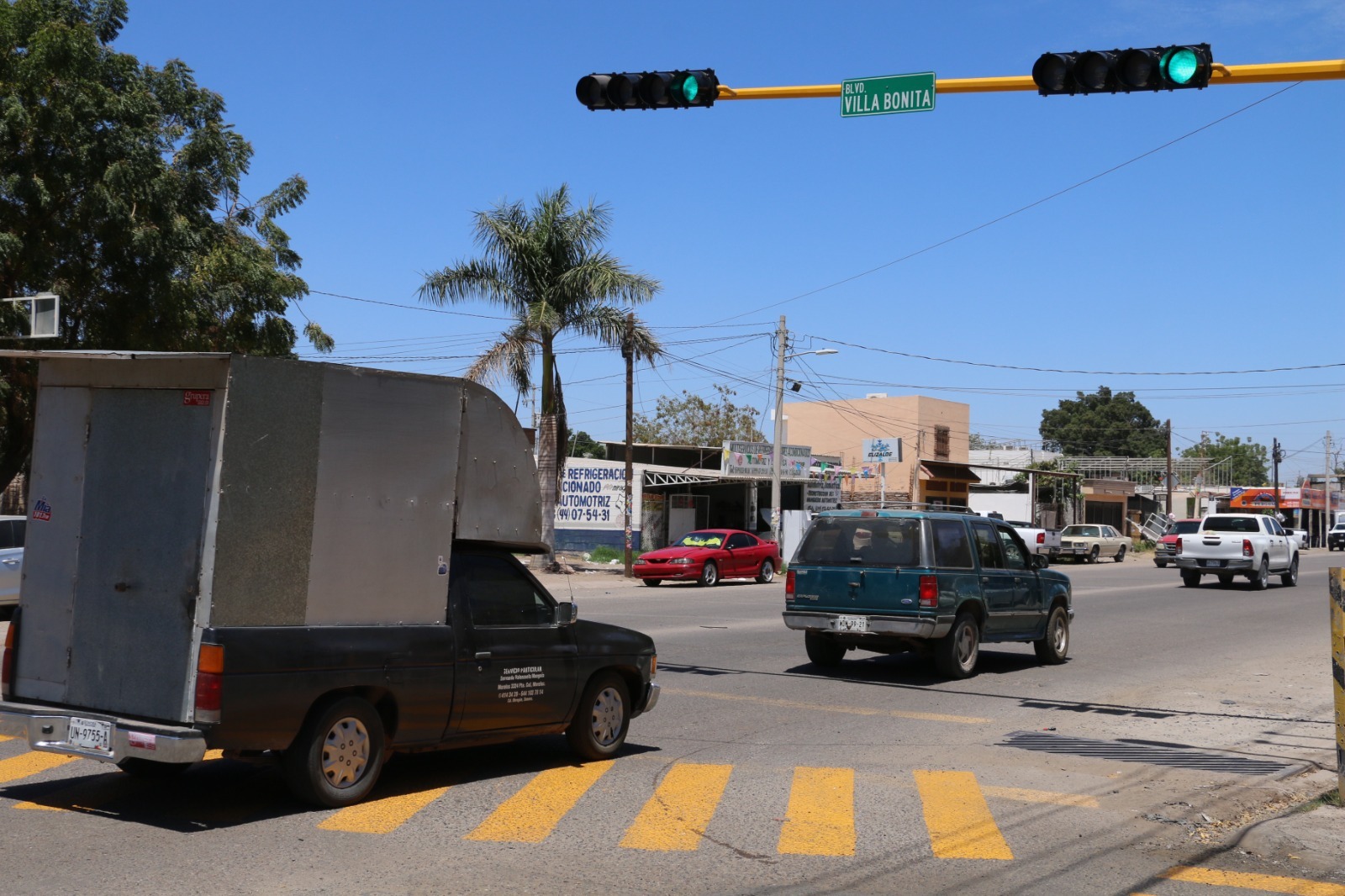Dicho semáforo se encuentra situado sobre la calle California y boulevard Villa bonita en mencionado asentamiento urbano, en donde además se llevaron a cabo trabajos de pintura de franjas reductoras de velocidad y alto.