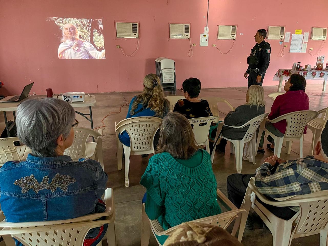 Para proporcionar momentos de esparcimiento y convivencia en un ambiente seguro y familiar, la Secretaría de Seguridad Pública Municipal a través de Programas Preventivos, llevó el programa cine en tu colonia a las abuelitas y abuelitos del Campo 29.
