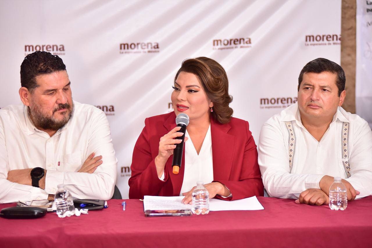 Finalmente, Lorenia Valles, acompañada del dirigente estatal de MORENA, Julio Navarro, el