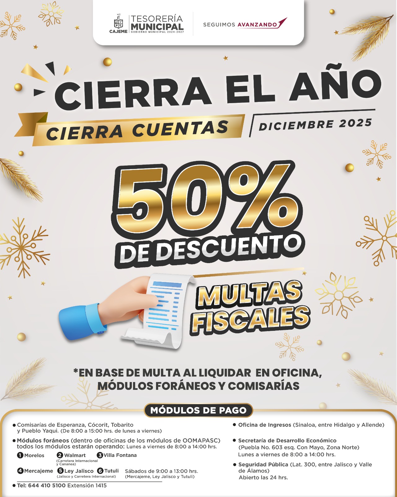 Acude a tu módulo de pago más cercano o a las oficinas de Tesorería y liquida pagando solo la mitad. ¡Cierra cuentas hoy mismo!