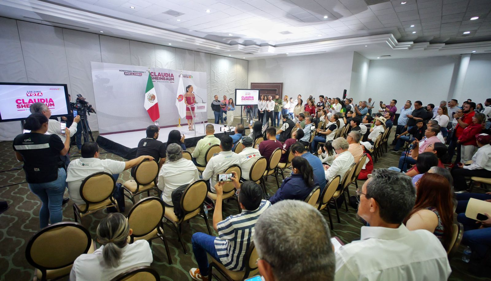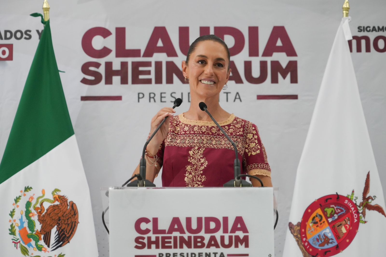 En su mensaje, Claudia Sheinbaum también celebró las preferencias de la 4T en Sinaloa rumbo a las elecciones del próximo 2 de junio, pues destacó que de acuerdo con las recientes encuestas del región, la coalición ‘’Sigamos Haciendo Historia’’, tiene el 65% de preferencia en el electorado sinaloense.