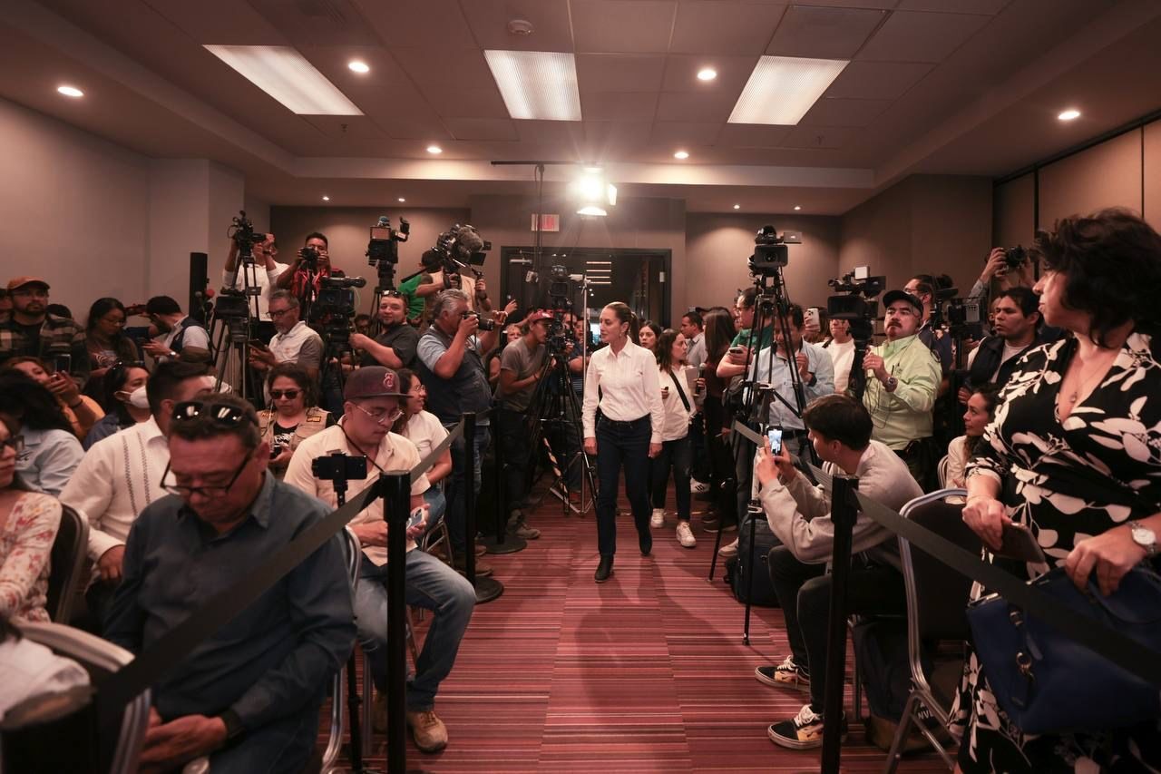 Ante la prensa, la abanderada de Morena, el PT y el PVEM compartió su enfoque para atender algunas problemáticas nacionales e internacionales como la migración, donde los muros no serán la solución, sino que por el contrario, es indispensable que Estados Unidos tenga una visión de cooperación para el desarrollo y reducir las causas que llevan a las personas a cambiar de residencia.