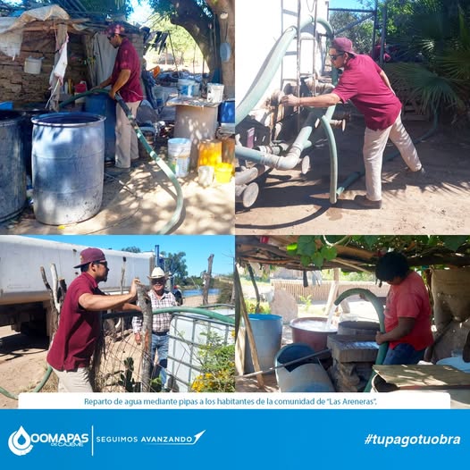 Reparto de agua mediante pipas a los habitantes de la comunidad de “Las Areneras”.