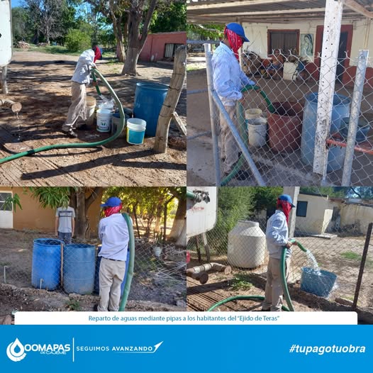 Reparto de aguas mediante pipas a los habitantes del “Ejido de Teras”.