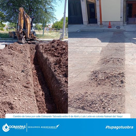 Cambio de toma por calle Edmundo Taboada entre 6 de Abril y Luis León en colonia Nainari del Yaqui.
