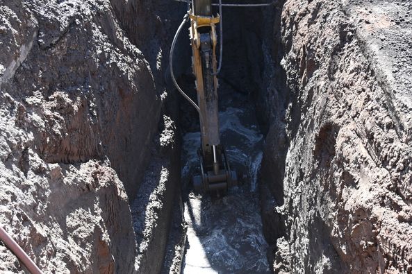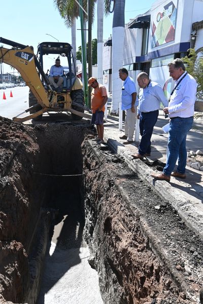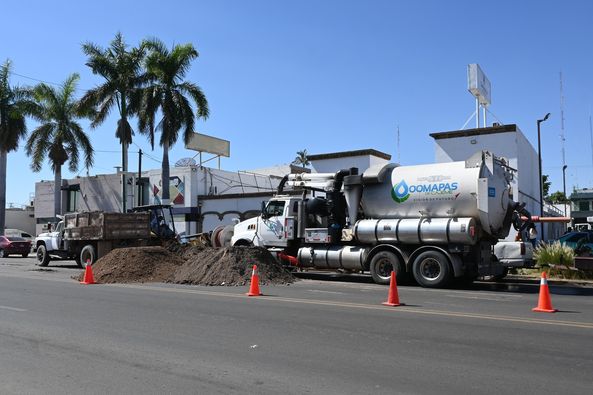 Trabajos en infraestructura sanitaria por calle Miguel Alemán entre Allende e Hidalgo, con lo cual se previenen derrames y drenajes colapsados.