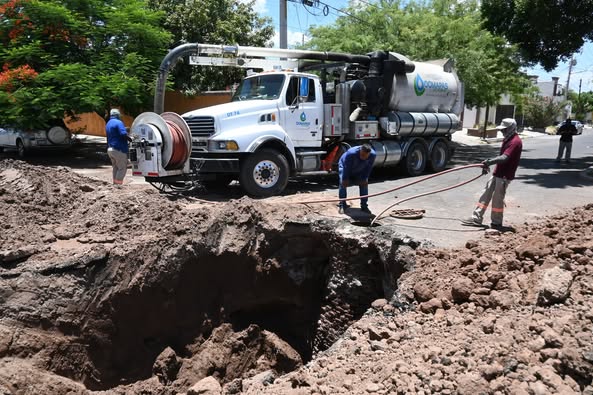Trabajos de reparación de hundimiento por calle Mayo y Campeche en Col. Chapultepec.