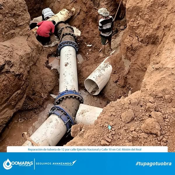 Interconexión de res hidraulica por calle Ejército Nacional y Calle 10 en Col. Misión del Real.