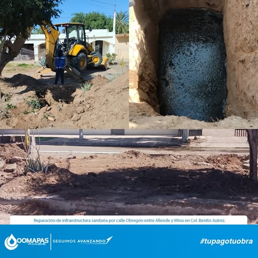 Reparación de infraestructura sanitaria por calle Obregón entre Allende y Mina en Col. Benito Juárez.