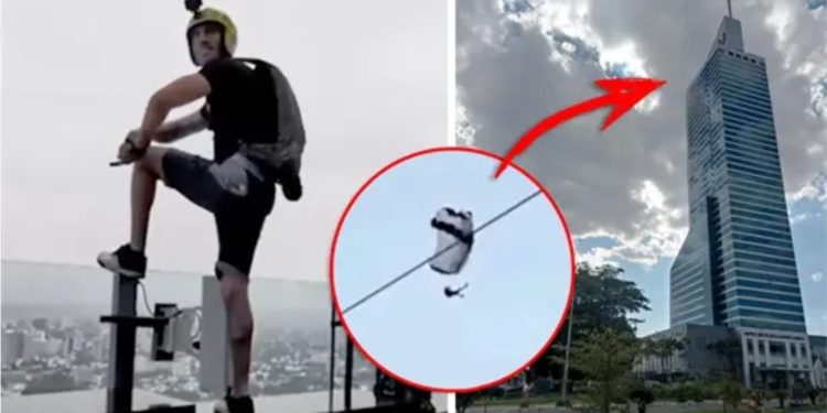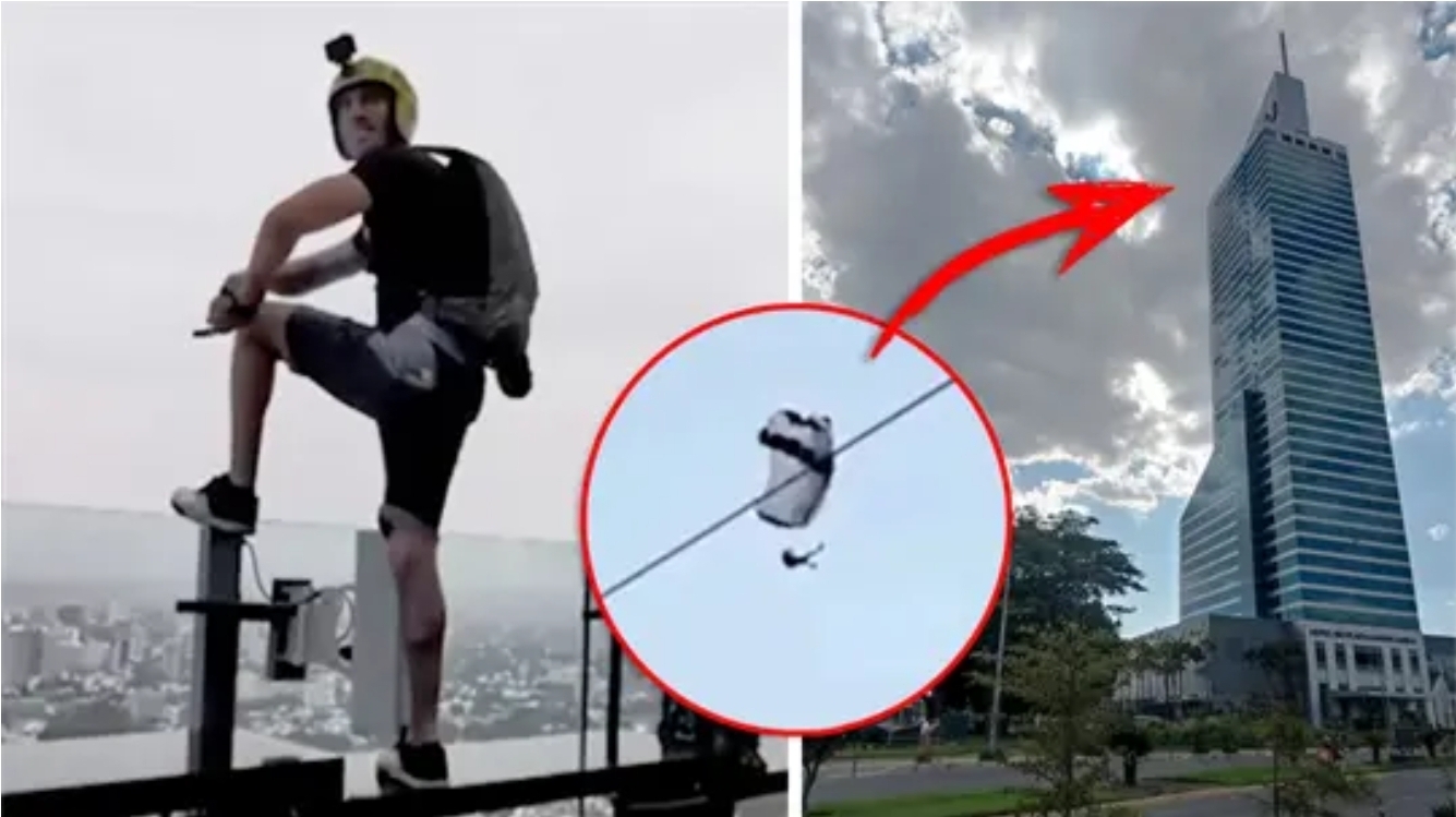 En videos difundidos en redes sociales se observa al hombre con casco y paracaídas, además de varias cámaras en el casco y las muñecas. En las grabaciones se escucha a personas tratar de persuadirlo para que no saltara y advertirle que no tenía autorización. “Es un salto”, responde el sujeto antes de lanzarse.