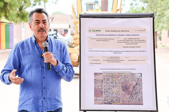 Con apoyo del Gobierno del Estado, el Presidente Javier Lamarque inició una obra de pavimentación con concreto hidráulico, en la colonia Aves del Castillo.