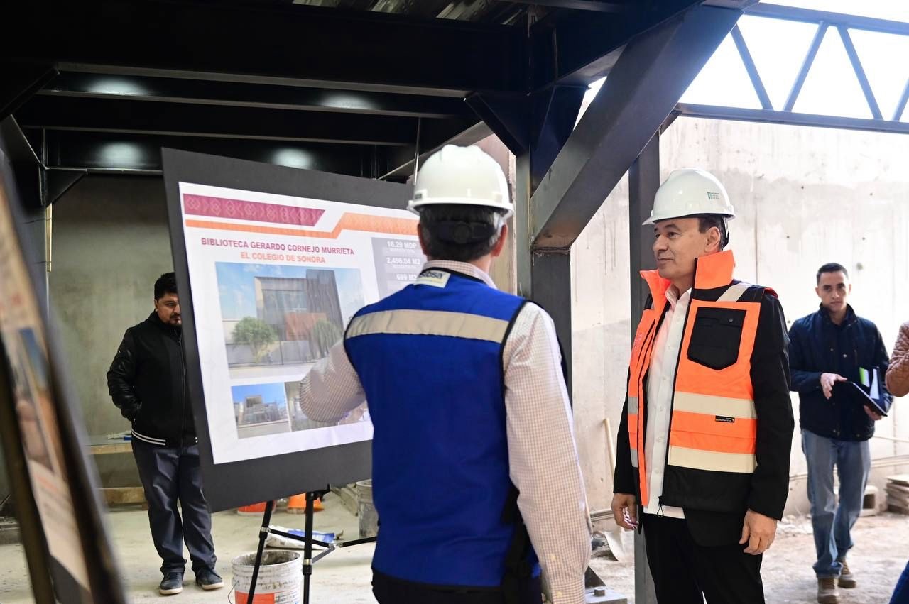 Hermosillo, Sonora; ++ de enero de 2024.- La construcción de la biblioteca del Colegio de Sonora representará la instalación más grande de su tipo en la entidad, la cual cuenta con una inversión de 16.29 millones de pesos y con un avance del 85%, beneficiando hasta 500 mil personas, informó el gobernador Alfonso Durazo Montaño.