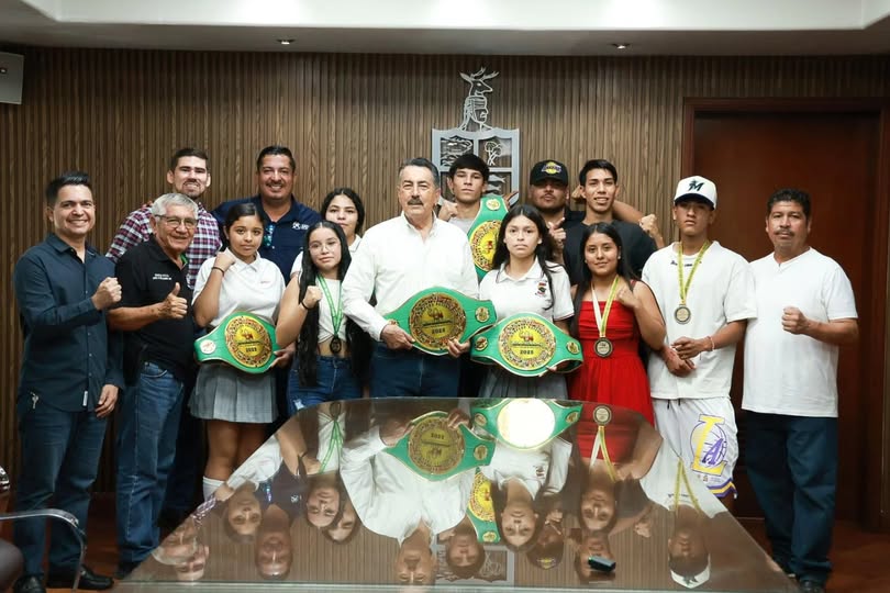 El Presidente Municipal de Cajeme, Javier Lamarque Cano, sostuvo un encuentro con los 10 destacados boxeadores Campeones Nacionales del Boxeo WBC 2025, quienes se preparan para representar a México en el próximo campeonato internacional.
