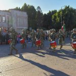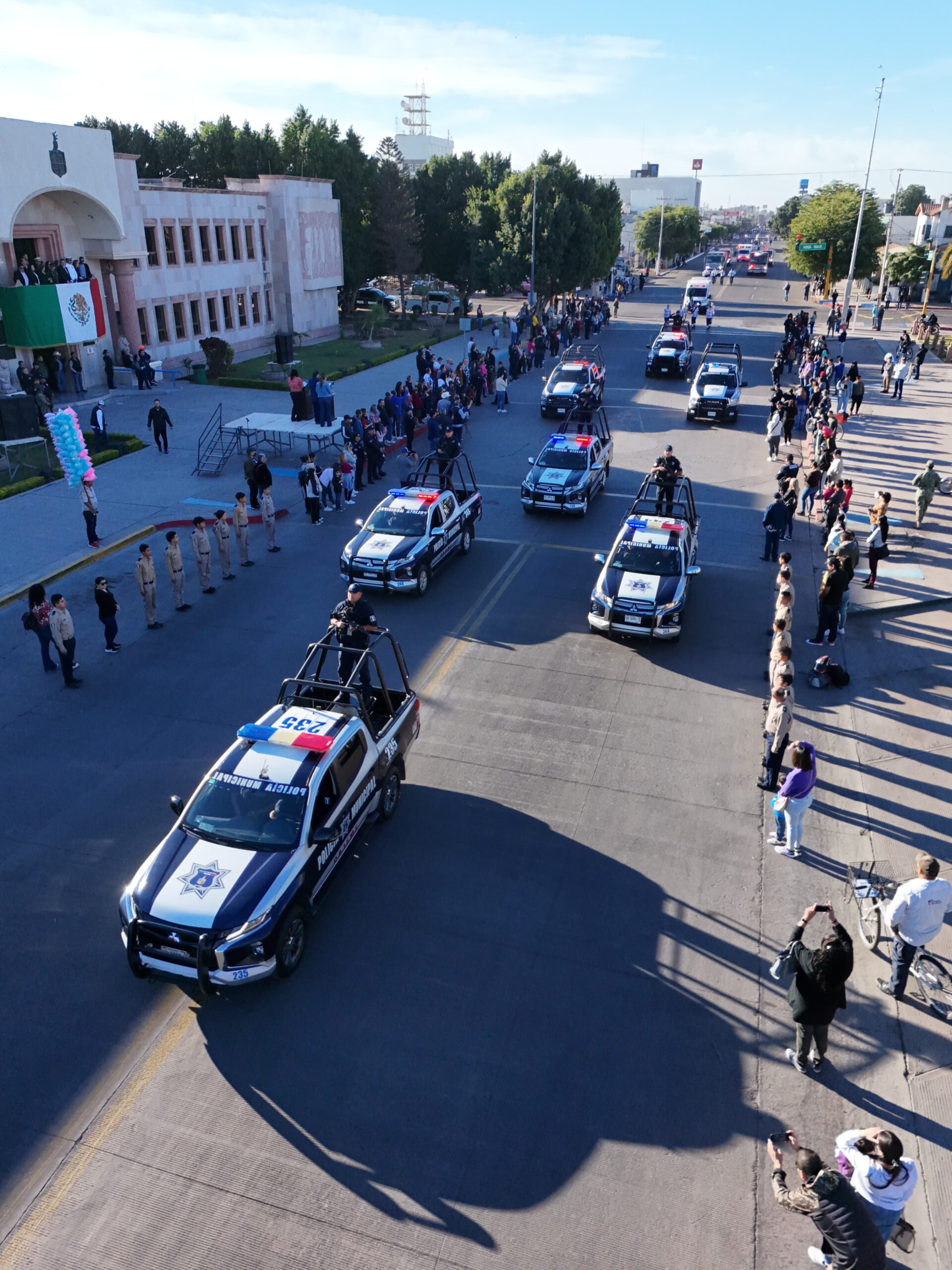 Posteriormente se dirigieron al balcón del Palacio Municipal para presidir el desfile cívico en conmemoración del Lábaro Patrio, en el que participaron corporaciones de los tres órdenes de gobierno, instituciones educativas de los diferentes niveles de instrucción, las Comisarías de la localidad y una agrupación local de motociclistas.