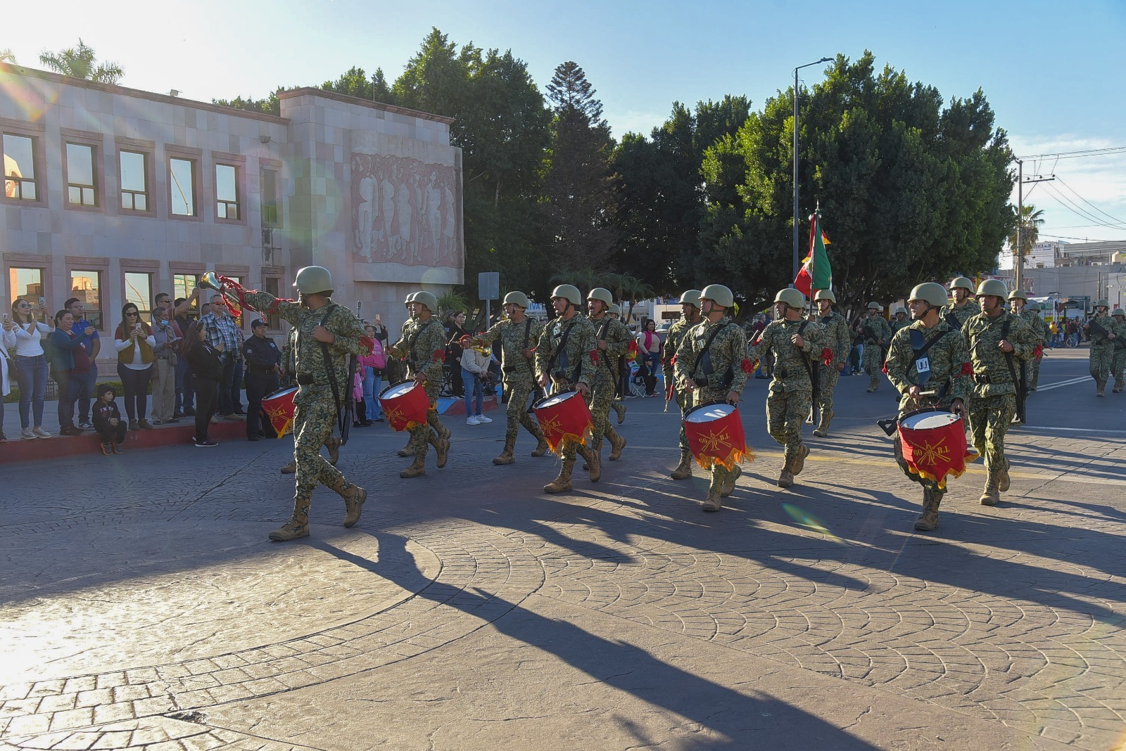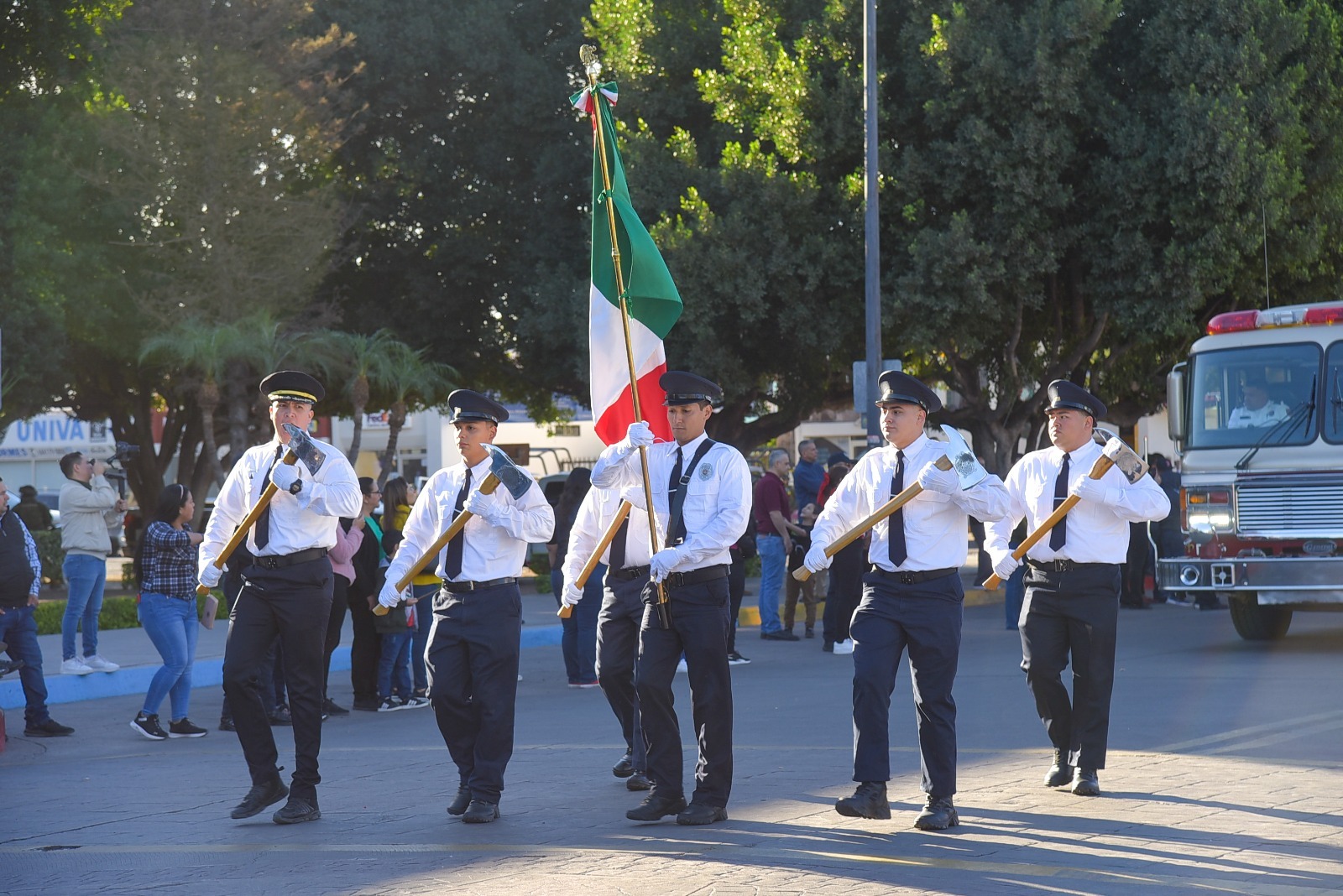 La SEDENA, representada por personal del 60 Batallón de Infantería inició el recorrido motorizado, seguido por las unidades de la Secretaría de Seguridad Pública Municipal, Cruz Roja, departamento de Bomberos de Ciudad Obregón y los contingentes representativos del Centro Asistencial de Desarrollo Infantil 1, 2 y 3.