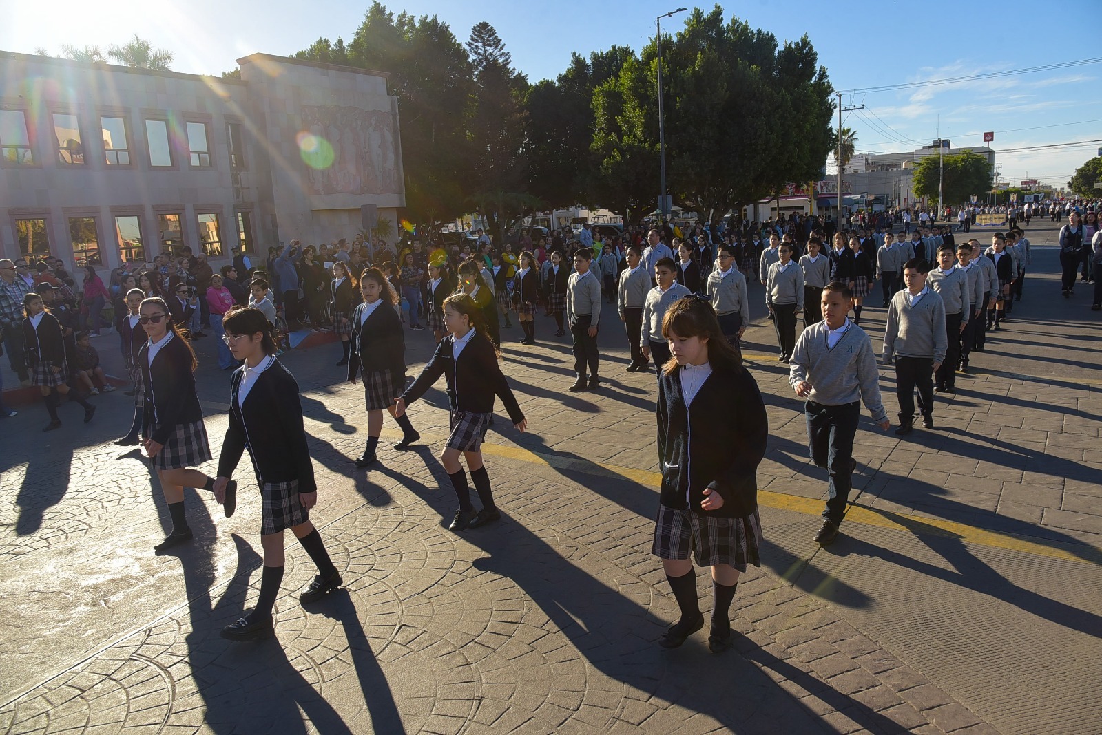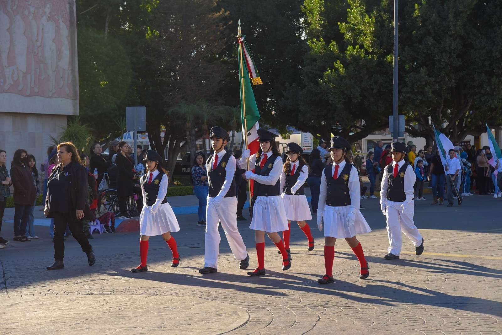 Luego de la ceremonia de izamiento de Bandera, con la participación mil 363 personas distribuidas en 23 contingentes, 19 vehículos y 23 motocicletas, se llevó a cabo el tradicional Desfile Cívico alusivo al 111 Aniversario del Día de la Bandera Mexicana.
