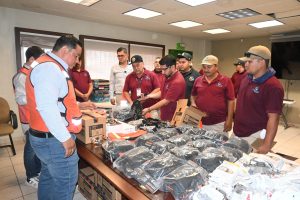 Con el objetivo de cumplir con el compromiso establecido por el presidente municipal Javier Lamarque, de brindar las mejores condiciones de trabajo al personal del organismo operador municipal de agua, alcantarillado y saneamiento de Cajeme; el director administrativo, Omar Acosta, acompañado del contralor Roberto Valenzuela, entregaron a nombre del director general Luis Alberto Ruiz, equipo de seguridad y protección a los trabajadores de la áreas de equipos de desazolve, cortes y lectura.