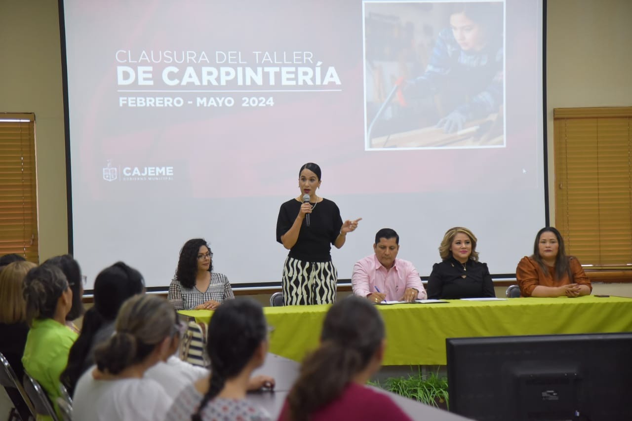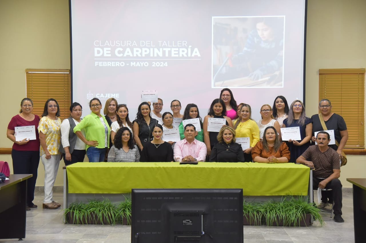 Durante la ceremonia de clausura del módulo febrero-mayo 2024, un total de 30 constancias fueron entregadas a igual número de mujeres que participaron en el Taller de Carpintería que promueve e imparte en el Instituto Cajemense de la Mujer (ICM).