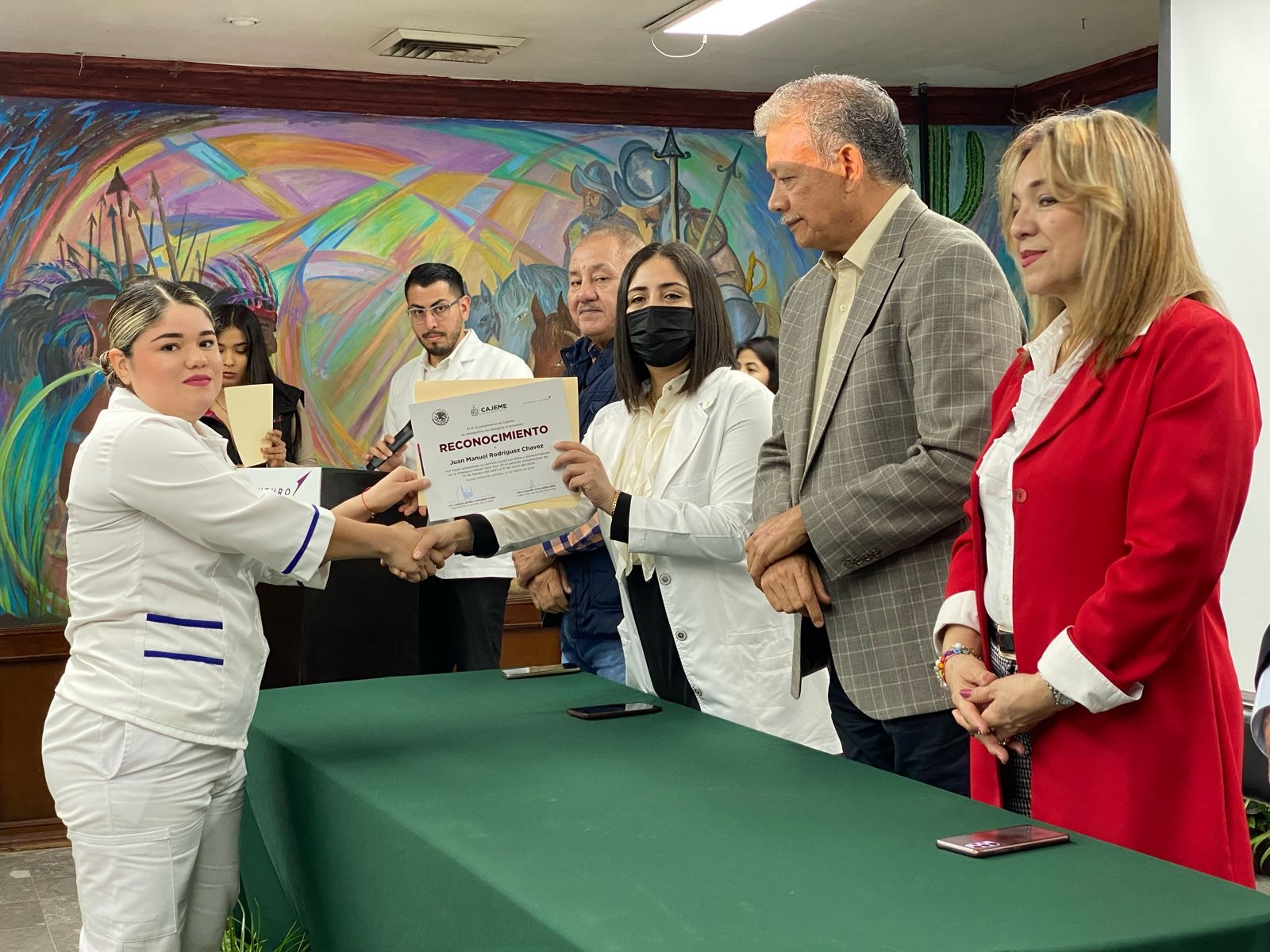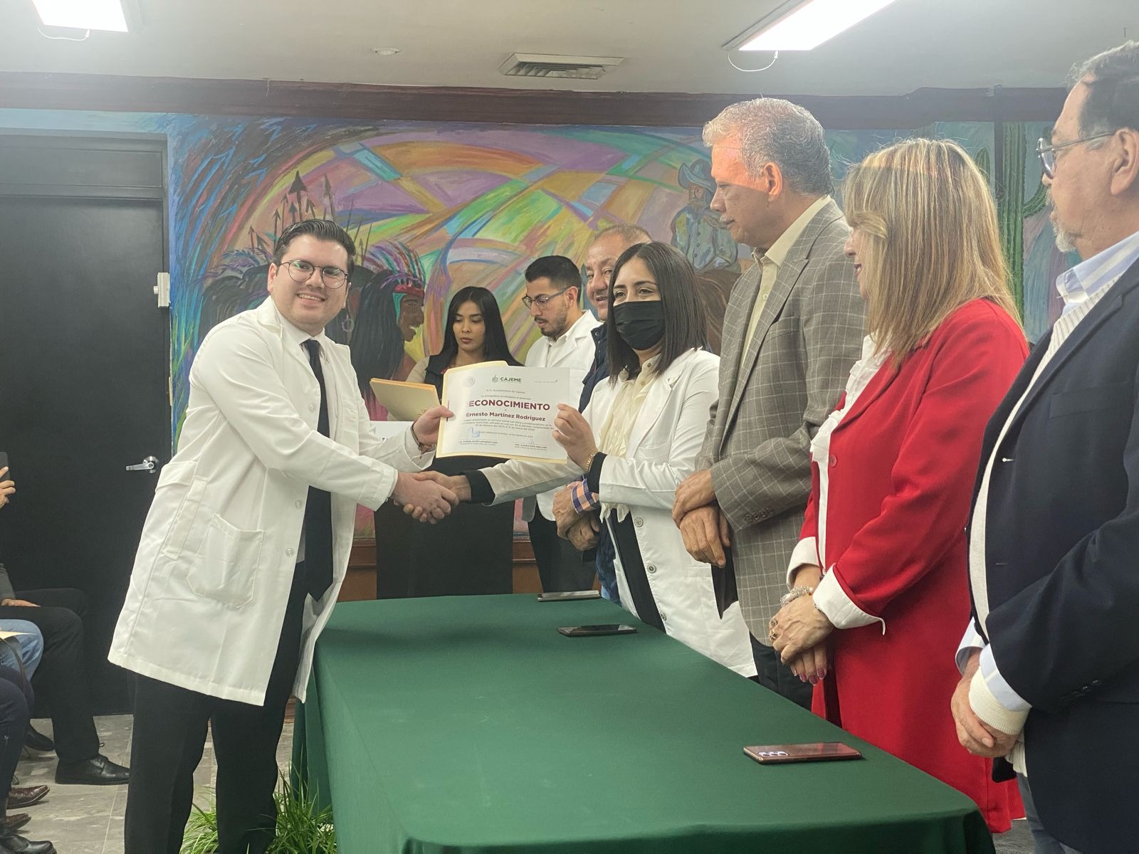 El Gobierno Municipal, a través de la Dirección de Salud, reconoció a 16 pasantes de Medicina, Enfermería y Odontología, quienes durante un año prestaron su servicio social en las unidades médicas del Ayuntamiento de Cajeme, tiempo en el cual atendieron las necesidades de cientos de ciudadanos en sus respectivos campos profesionales.