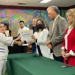 Por su parte, la pasante de Medicina, Ciria Fernanda Escobedo Jiménez, a nombre de sus compañeras y compañeros agradeció a las autoridades municipales por la oportunidad que les brindaron para continuar su desarrollo profesional, de igual manera exhortó a sus compañeros a continuar persiguiendo sus sueños y trabajar siempre en la promoción y cuidado de la salud de en beneficio de la población.